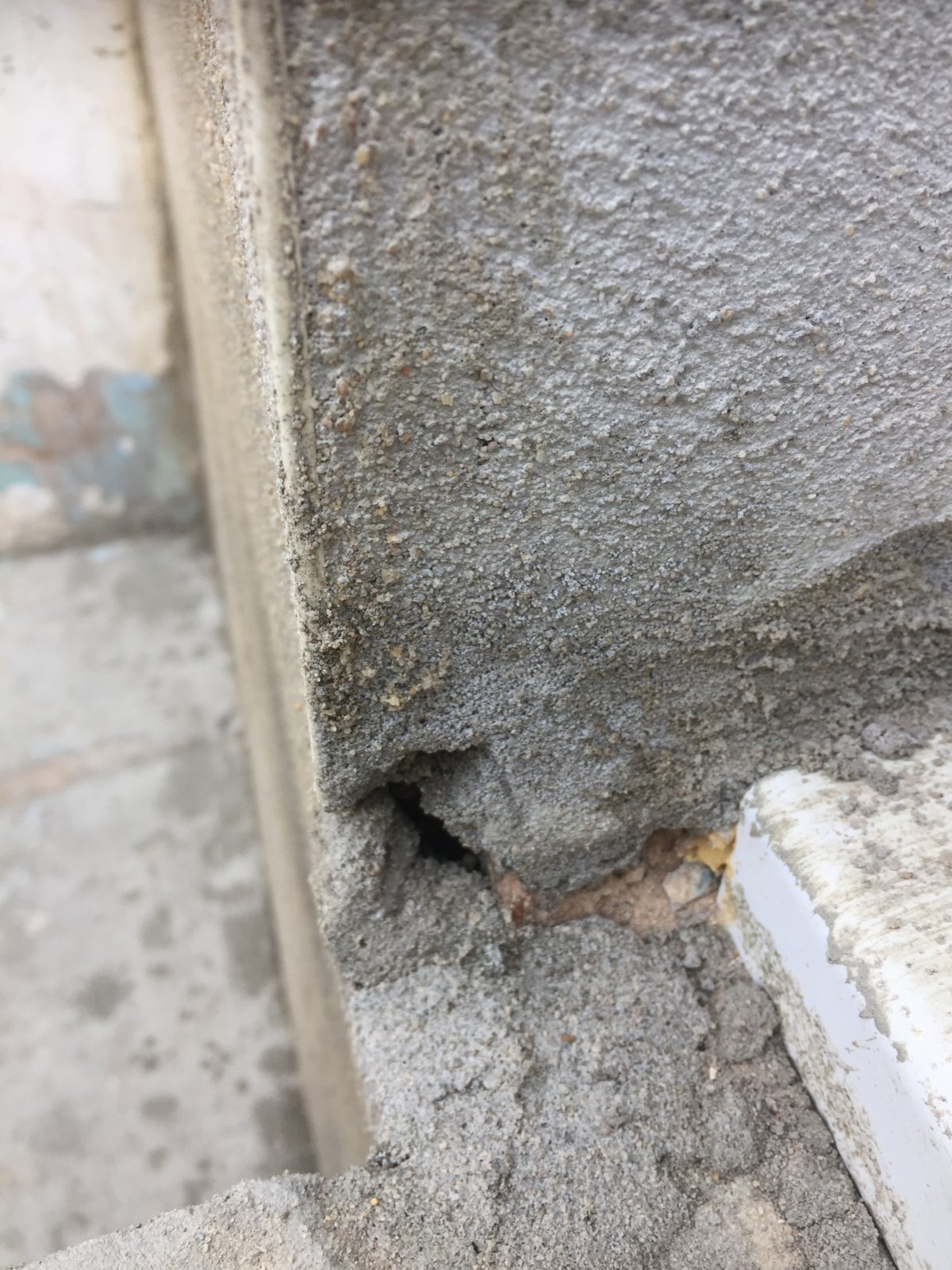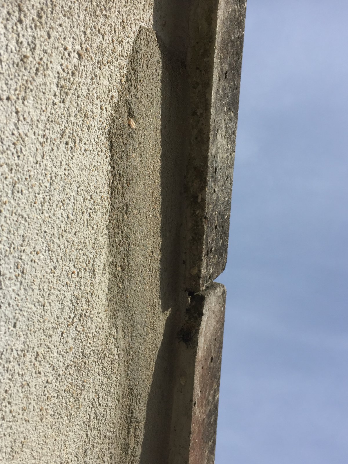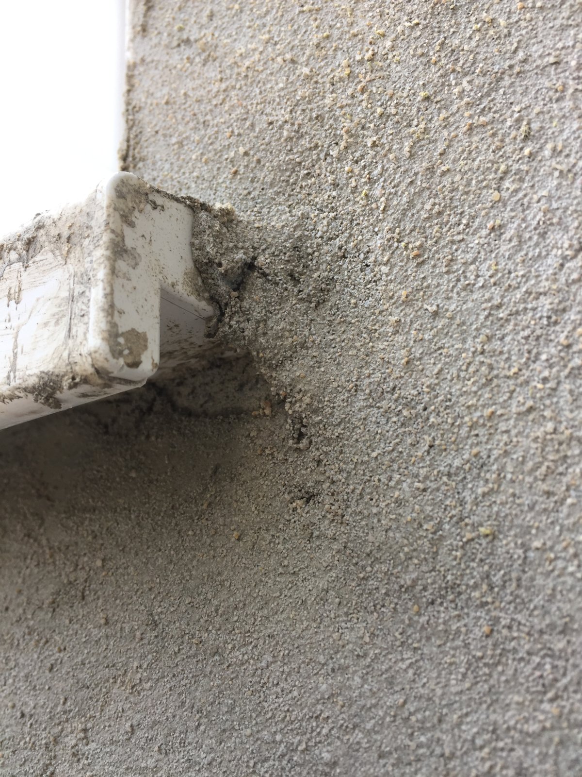 Problem is, the rendering is not flat, it’s pretty lumpy and bumpy even though he rendered the underside of the new flat lintel and there is also a gap left. I watched him do this yesterday and the render wouldn’t stick to the lintel.