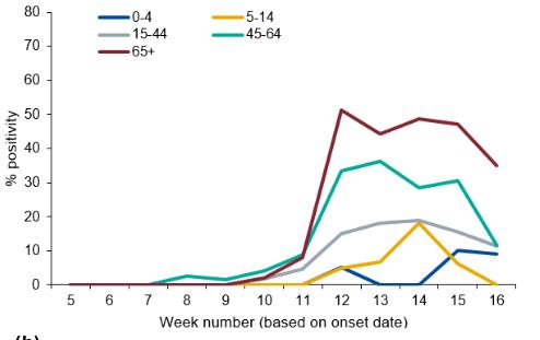 If you're getting 50% of your tests back as positive then you're testing that group too little. That graph shows that we were epically under testing in week 12