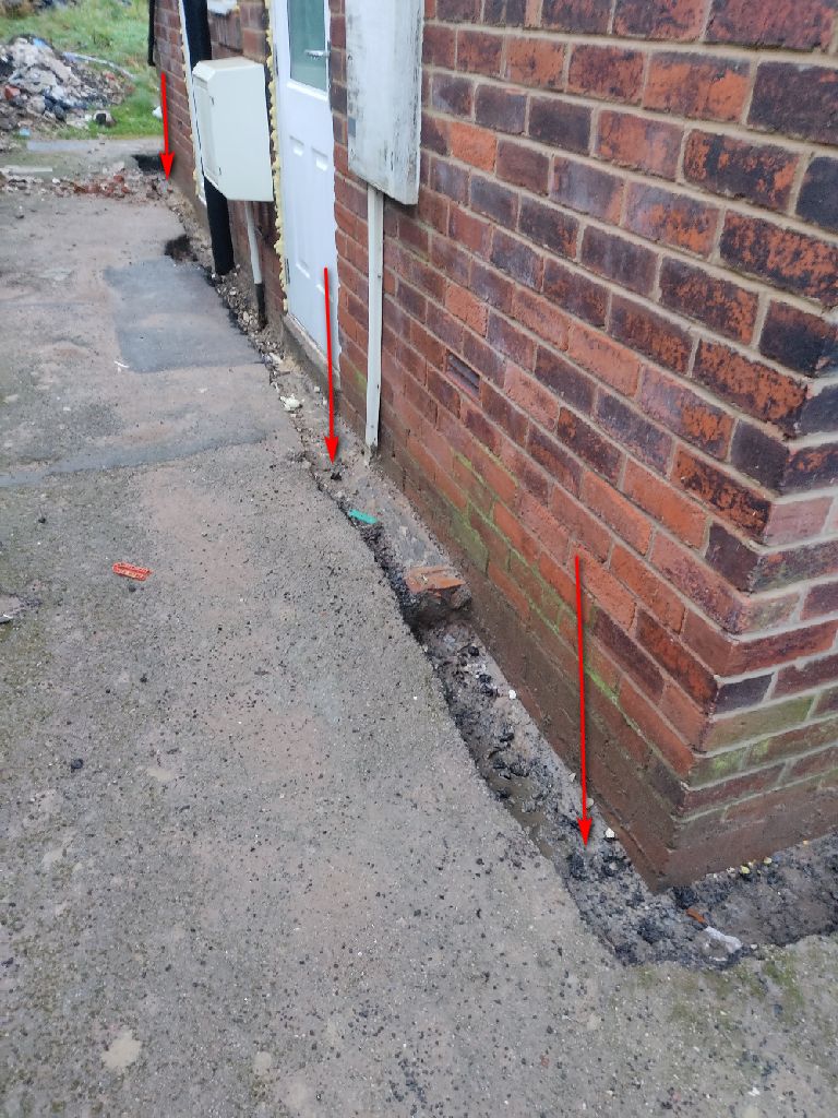 I was originally planning to replace with block paving or gravel in plastic grids. Problem is i will have to dig down at the side and expose the shallow foundations so i can back fill with type 1 then either blocks or gravel. This will have the drive finish at foundation level, but the foundations should be buried right? If you look on the picture of the back of the house the concrete slab is the same height as the buried foundations. So is this already exposed foundations? i put arrows on the first picture where the foundations are.