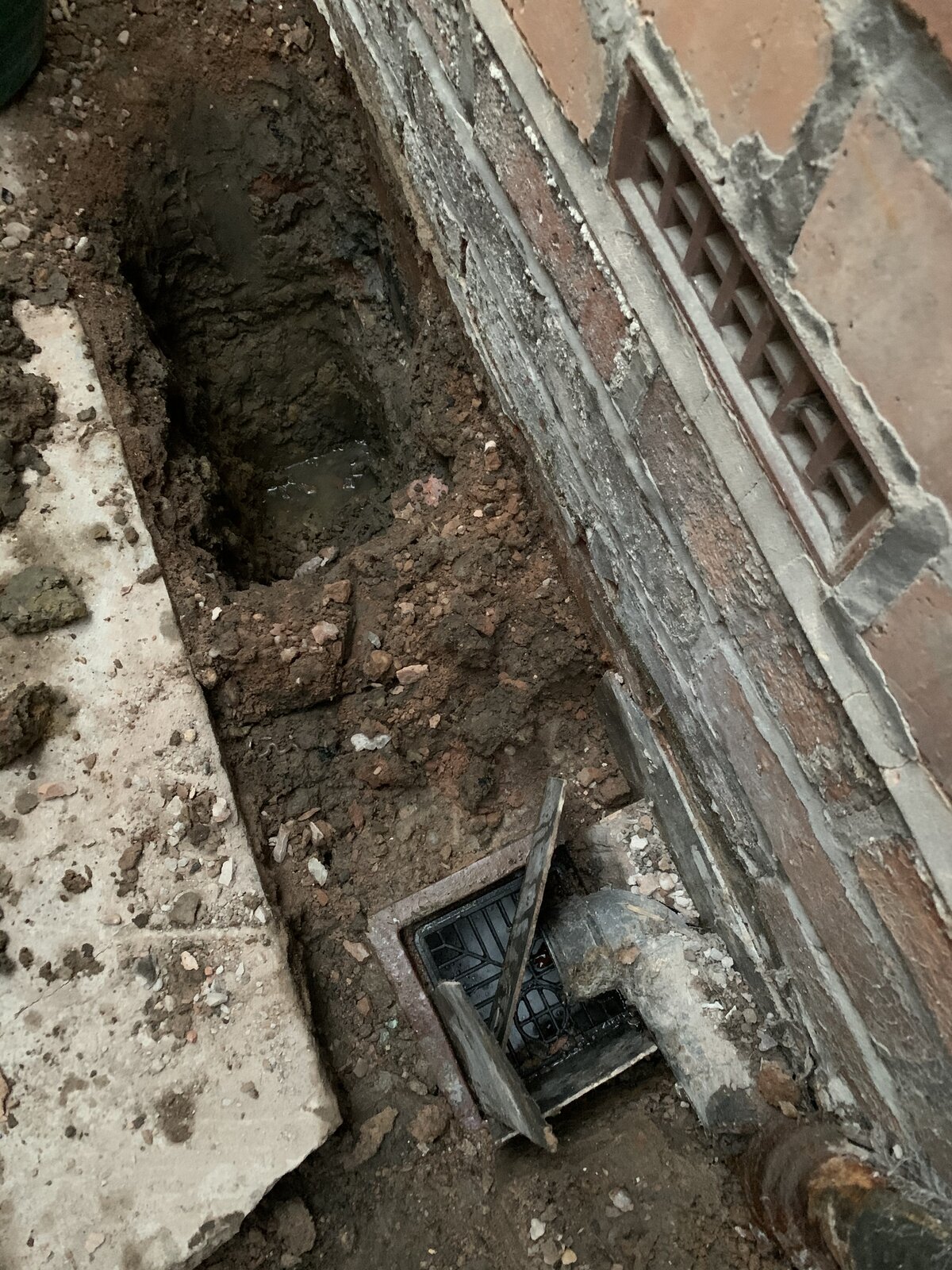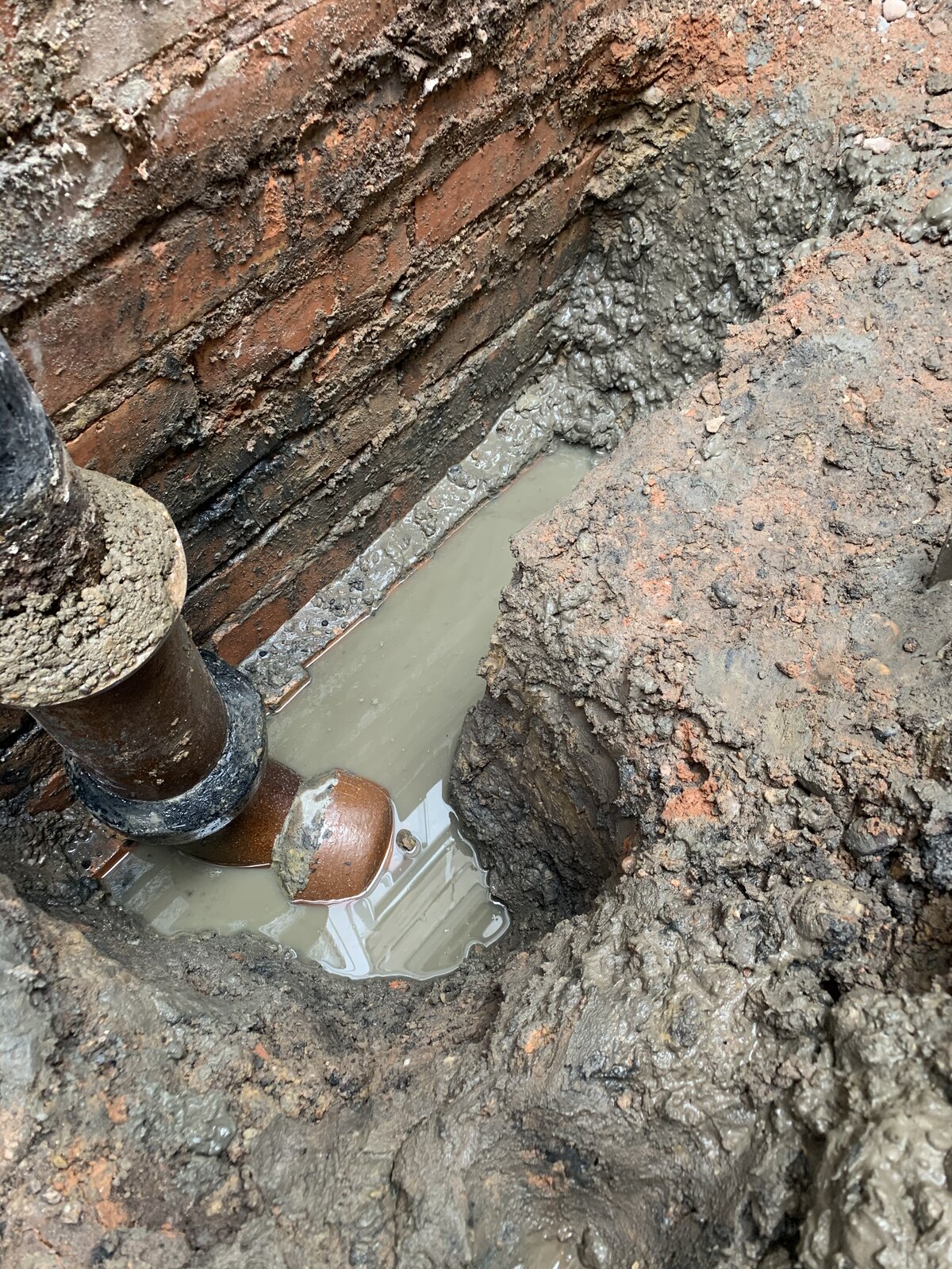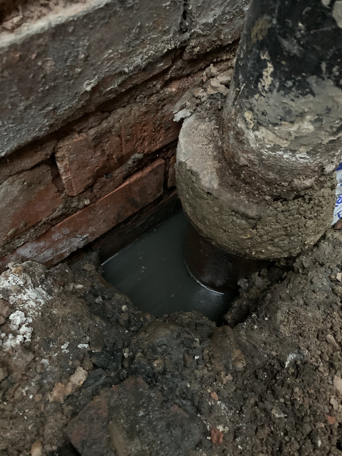 Looking for some advice, I was looking to extend my drainage for a new conservatory however after breaking through a concrete floor and digging down I’ve noticed a foul smell. Having dug further there’s a lot of water around the foul drainage soil pipe (see photo). It doesn’t drain away or get any higher. There’s no obvious gulley though and having felt around the pipe there is just soil and stones down there and the water does smell fetid. All the earth nearby is sodden and having lifted some concrete slabs (that were under the concrete floor) they’re wet underneath. Is this normal for a build of this age (1932)? Trying to understand if this is just the system design of the age, a high water table or whether there is a big issue with my drainage. I’ve also dug a pilot hole which slowly fills with water although not to the same level as around the soil pipe. I be dug down to the foundations but have not been able to find a drainage pipes but I don’t want to dig any further below the foundations as the soil down there is so wet I’m worried about subsidence and taking away what little support there is there. There is a ceramic gulley for the bath/basin adjacent to the soil pipe which I plan to dig out tomorrow to find some connecting pipes and gauge the depth of the system and see if I can find any cracks. However, I would welcome any advice on this issue and whether I need to be doing further work or backing away from this.