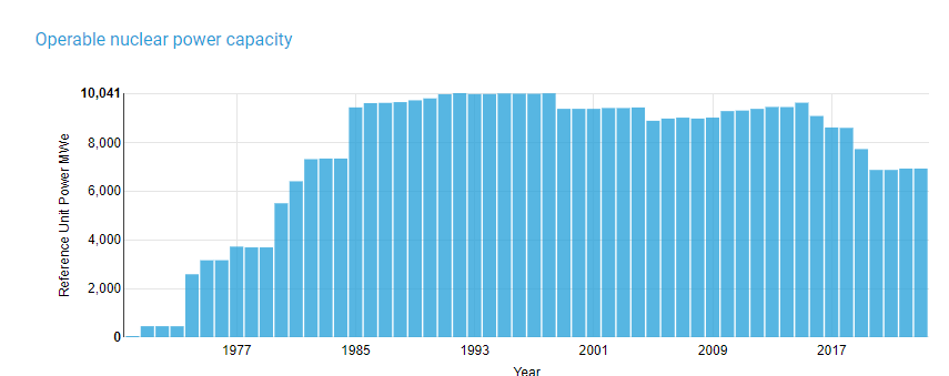 • In 2015 decisions were made to close four older reactors by 2020, removing 2.8 GWe net.