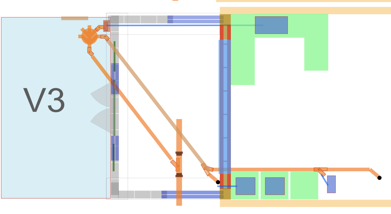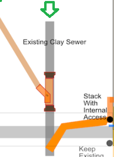All orange, blue pipes, including teeing into the old drain and IC will be new.