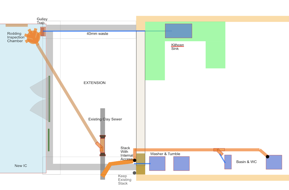 I'm building an extension, and working on sewer plans. We're building over a shared drain and so BI wants new inspection chamber for rodding access.