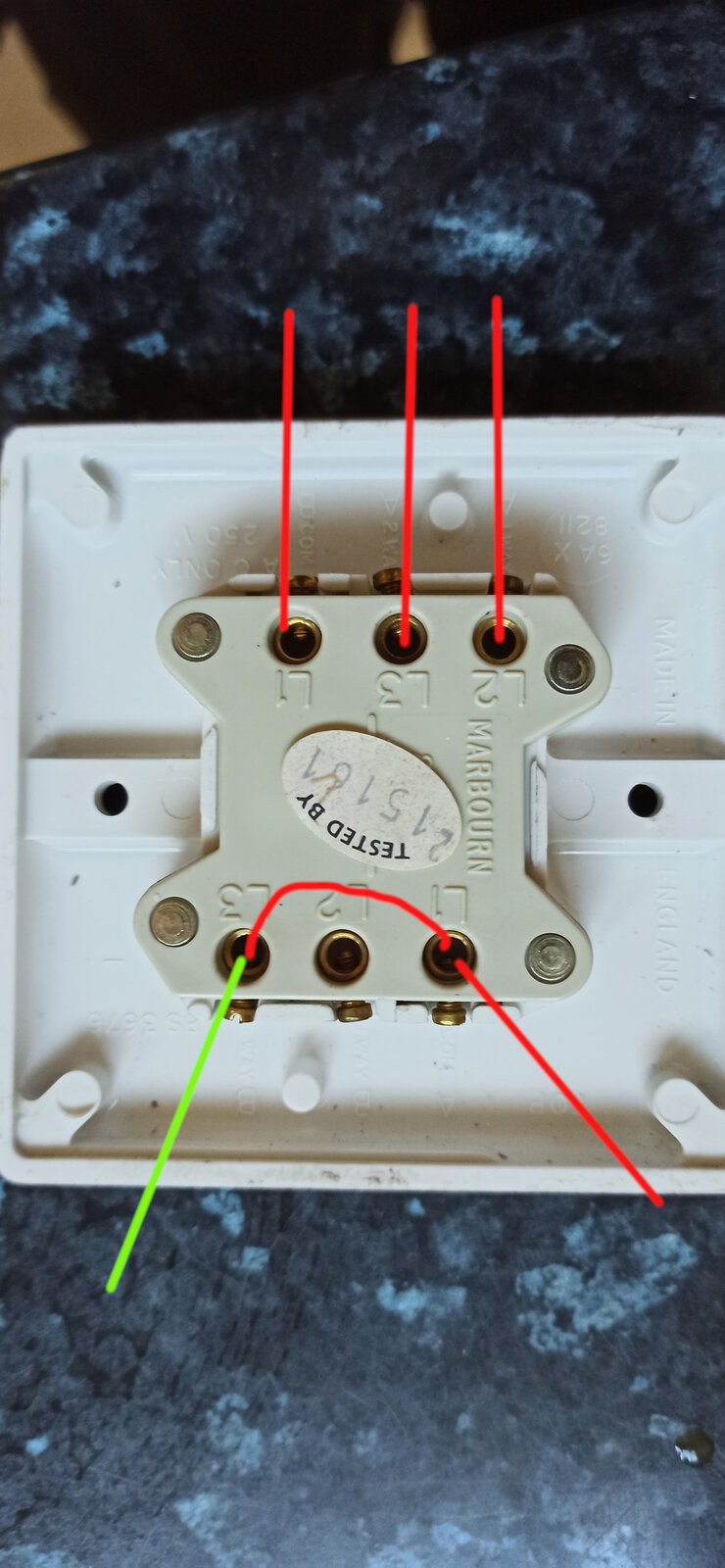 L1 and L3 on this side were also connected with a short red cable.