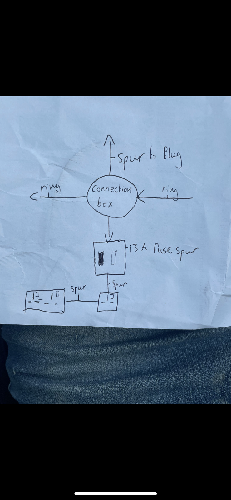Essentially there is a junction box as the break point in the ring and two spurs are taken from this point , one spur being a standard double socket but the other being a 13amp FCU. All cables are standard 2.5mm. Can anyone explain if this is ok now due to one leg being a FCU.