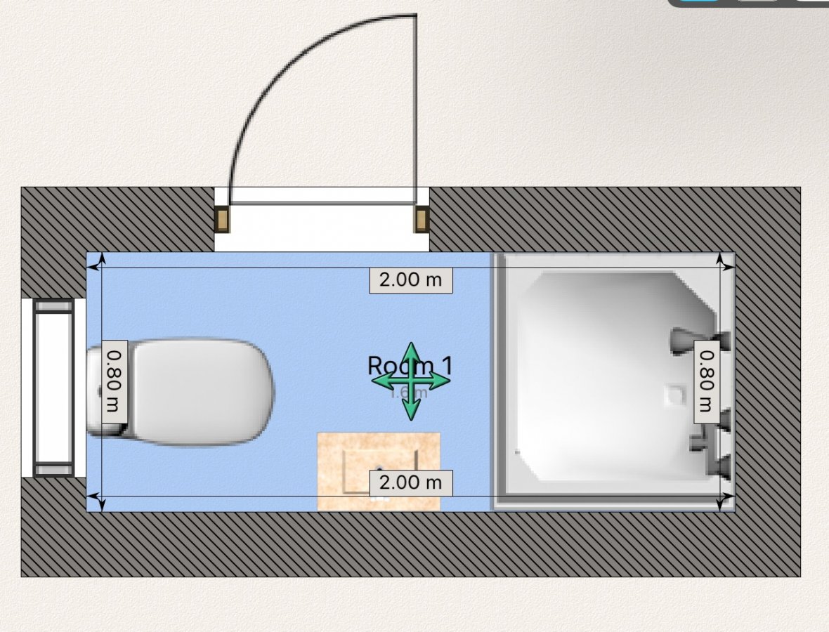 If possible I think I would move the door to the right so the door frame matches the biggest floor space as at the moment you have to goto the room in at an angle to miss the front of the toilet.