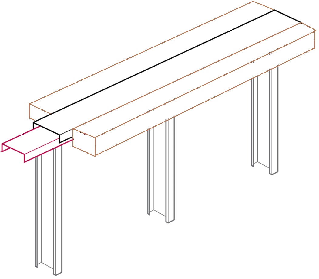 Mortar layer on the existing party wall (exposed brick visible joist level)