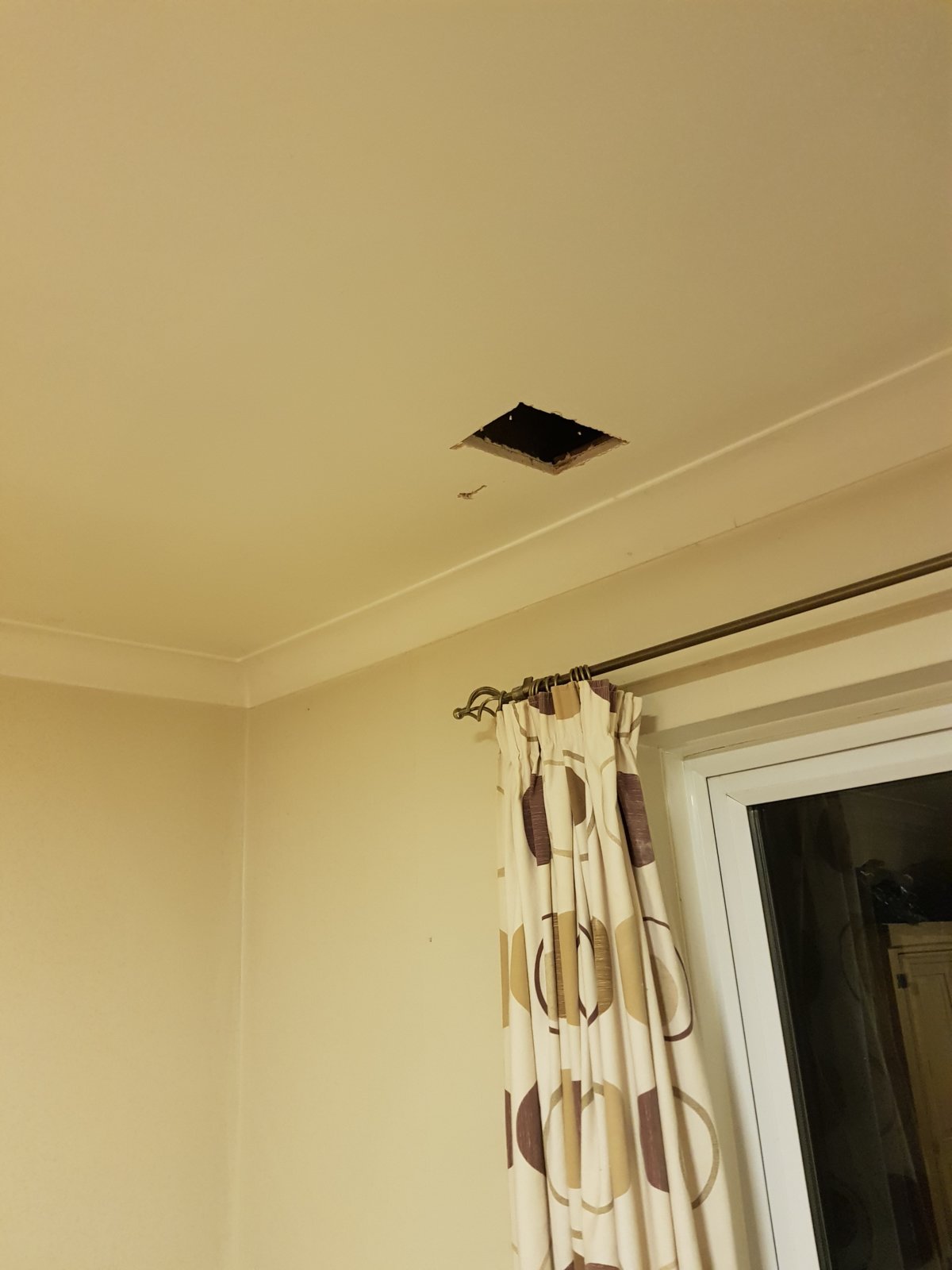 Taking a level to the ceiling, the joist under the wall unsurprisingly has dropped - not sure how to say by how much, but its no longer a flat ceiling