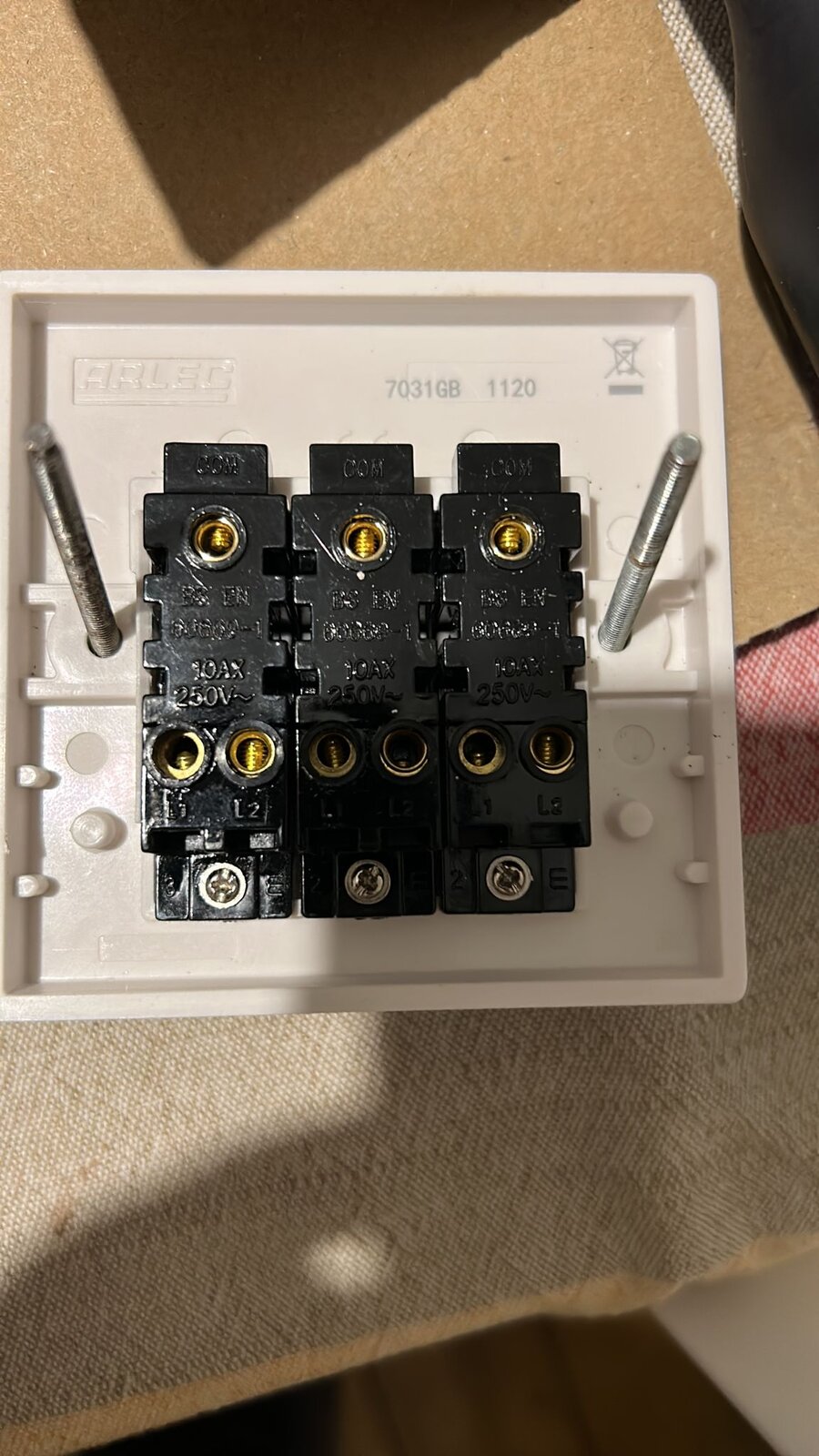 Replacing a 3 gang light switch but I forgot to label the wires when removing the plug. There are 4 brown and 1 black wire. Could someone advise, if I use a multimeter, how to figure out what goes where? 1 light is intermediate and other 2 aren't.