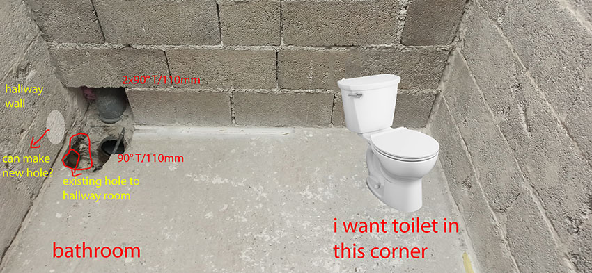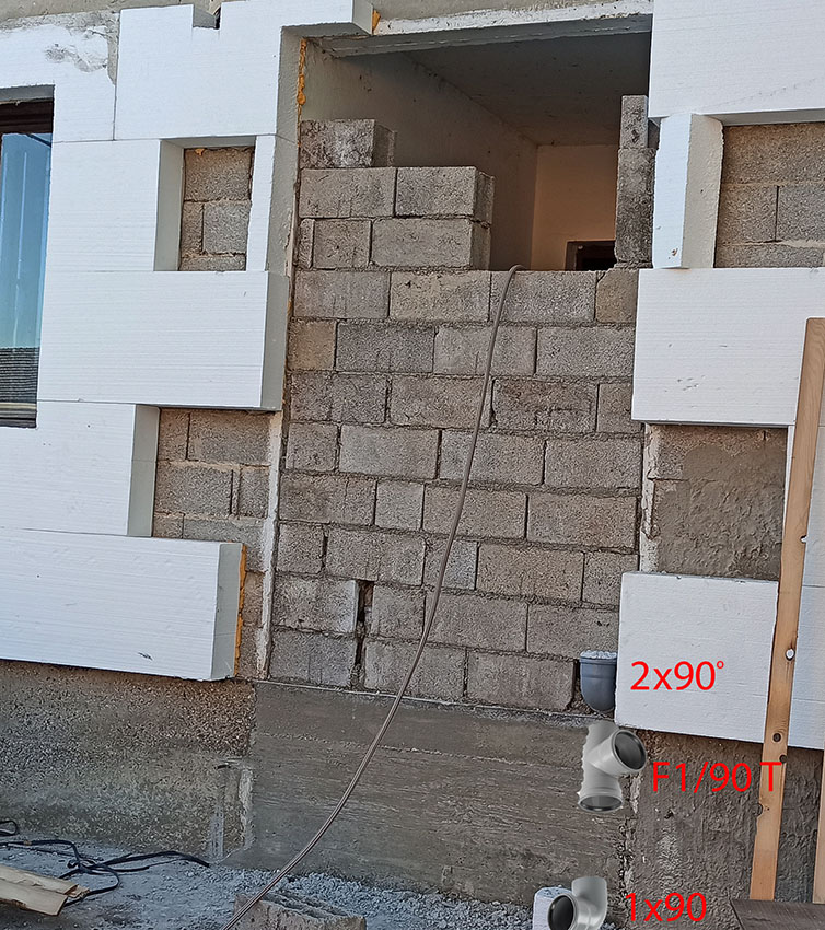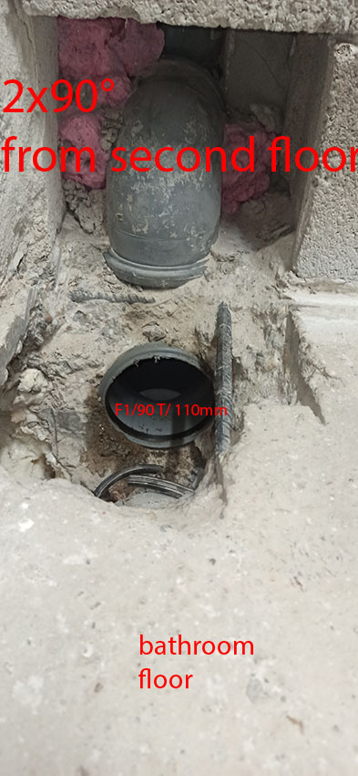 One crazy plumber make many 90° piping for toilets drainage. I need to correct because i am suspicious that this setup can work, especially F1/90T.