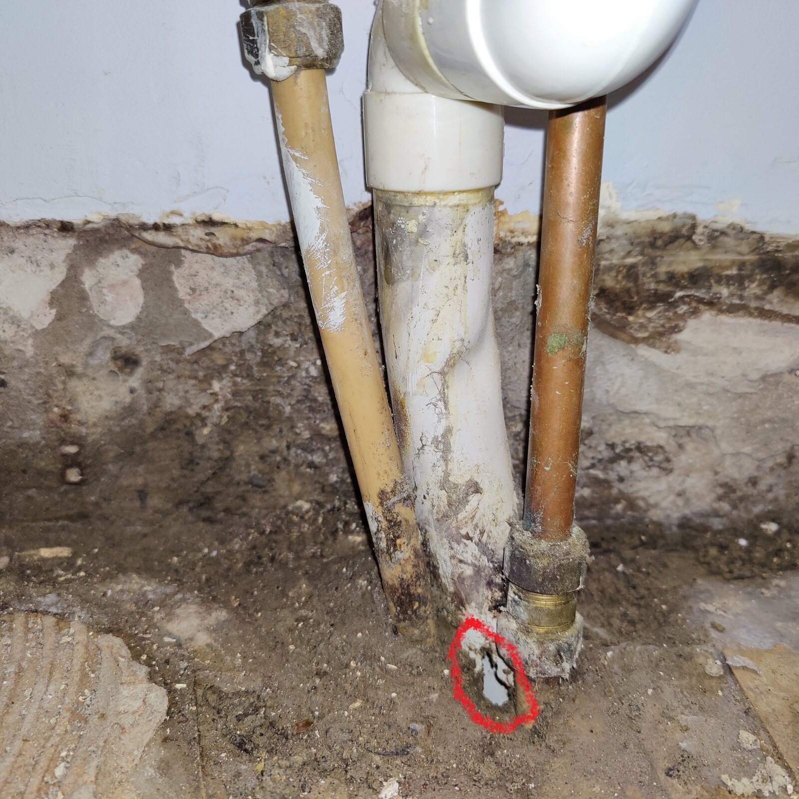 Hi, hoping someone can help me here. I have a 36mm OD solvent drain pipe that is cracked and has a piece missing at the concrete surface (circled in red in the attached pic).