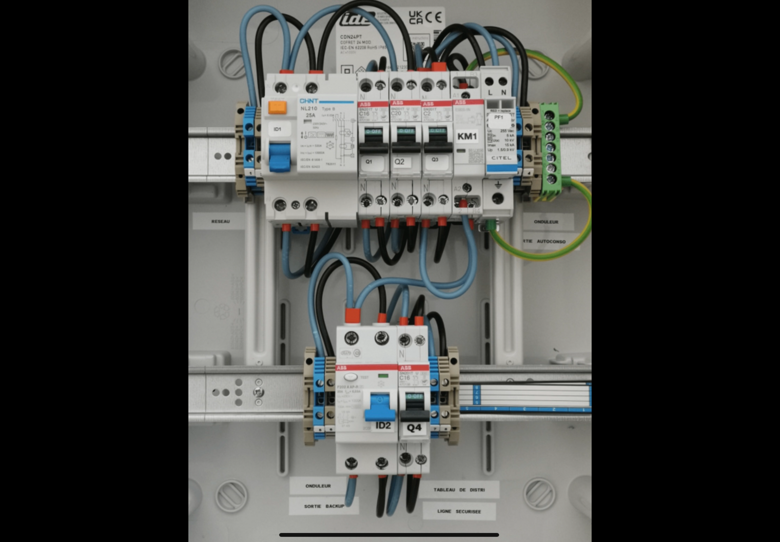 Hi guys…long shot…but I thought I’d try….does anyone know how to wire this up…I’m getting an inverter that will supply the grid consumer unit but in the event of a power cut, it will disconnect the grid side and supply critical power to this box. I believe the grid side goes to the top rail and the critical side goes to the bottom rail. When the grid power is cut, a switch in this box on the top rail cuts the connection to the grid side and switches solar power to the critical bottom rail. It would really help me understand this better if someone knows where to make these connections…where do the inverters AC grid and AC load go in the box, where does the main consumer unit connect to and where does the critical load come from on the bottom rail…hope someone can help…thank you..Mike