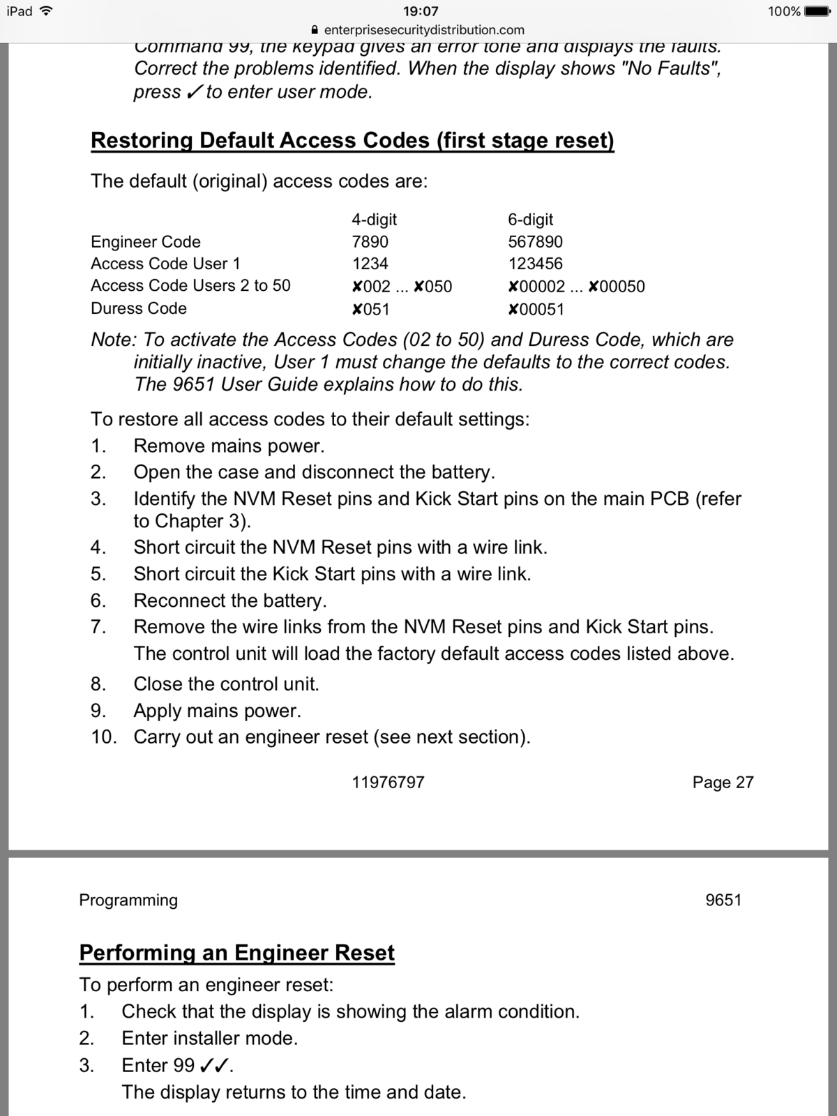Just moved into a new flat with a 9651 wall panel but no prior access codes. Anybody know how I can reset the system so I can choose and use my own codes?