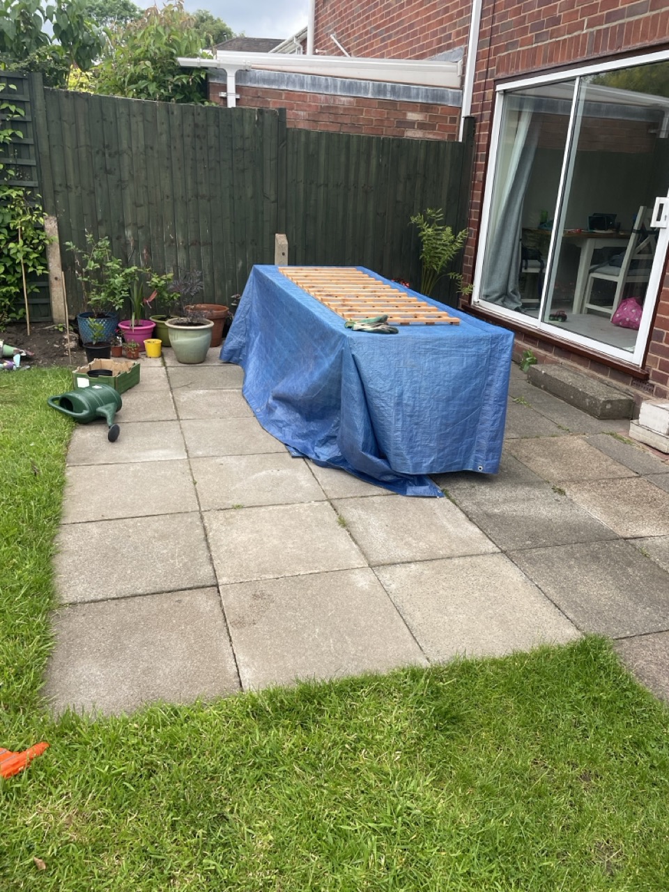 2) What should I fix the uprights to? I’ve included a photo of the area so you can see what I’m working with. These 60mm thick slabs are sitting on 60mm sand and 150mm compacted MOT1 hardcore. Crucial thing is the wood can’t be sitting directly on the slabs because of the risk of water damage, so I will need some kind of elevated bracket big enough for 150x150mm posts. I also don’t want anything very conspicuous. Has to be fairly discrete. I was thinking something like this, but would that be okay directly on a slab? I'm only having posts (3 of them) at the far end of the patio. The other side will be fixed directly to house wall, so it's effectively a lean-to pergola).