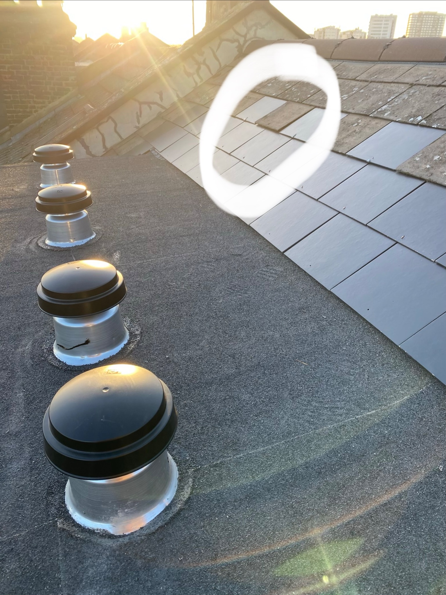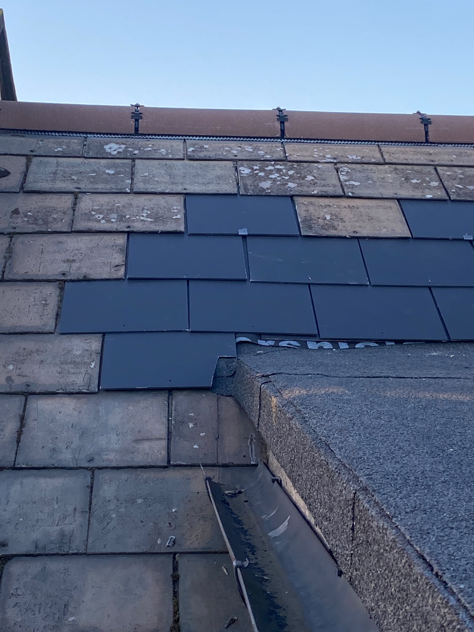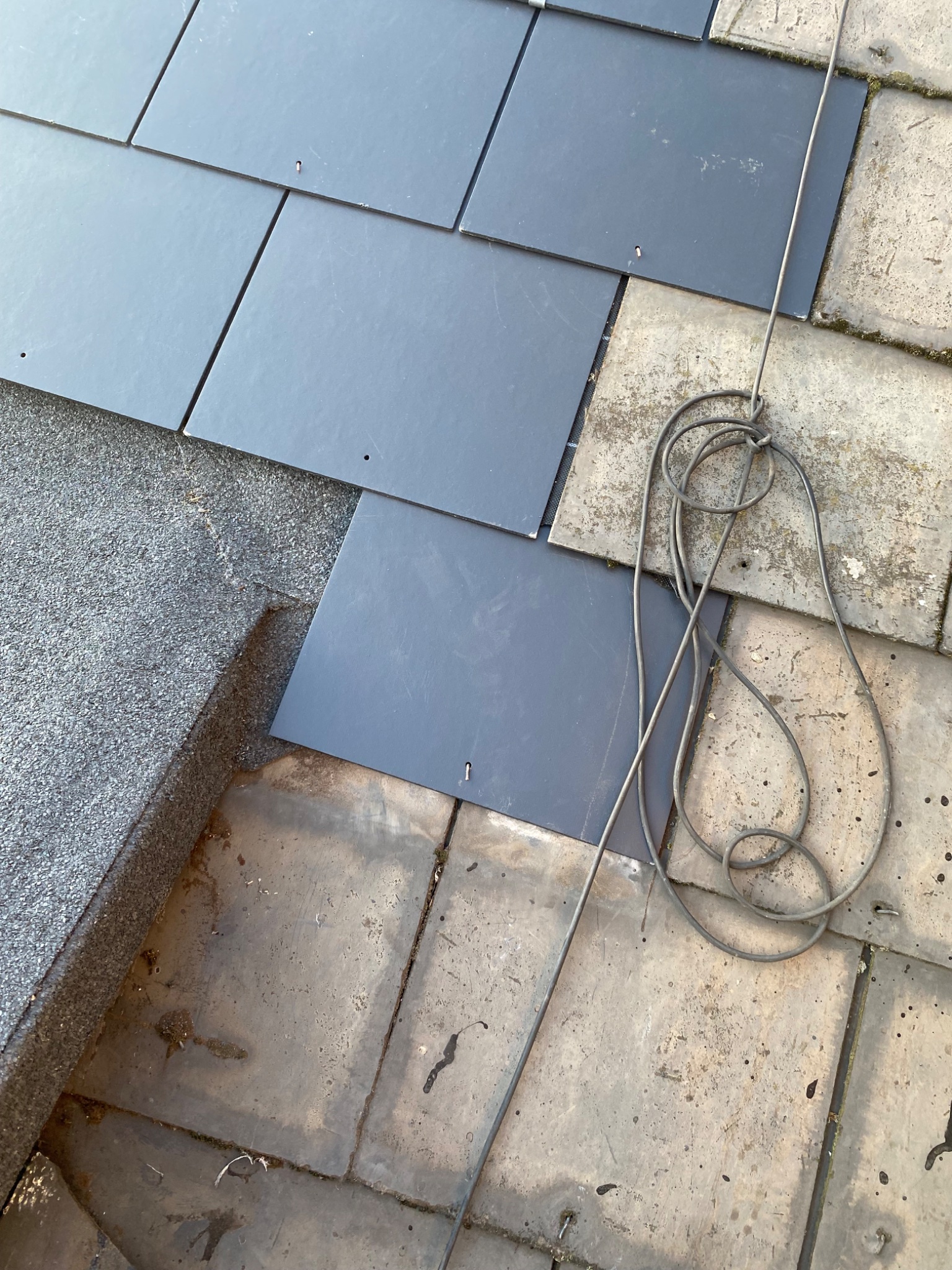 Slate not sitting flush where these had to be taken up during the works (some were replaced with the darker ones).