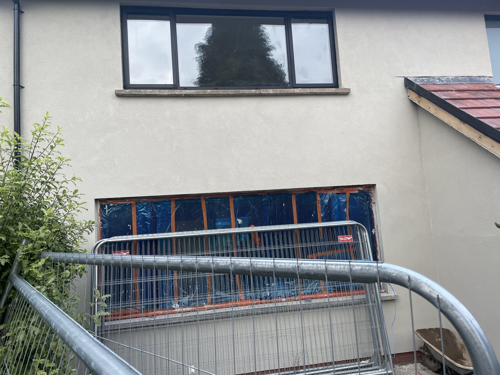There’s no insulation beneath. Basecoat was applied to existing and new block / brickwork.