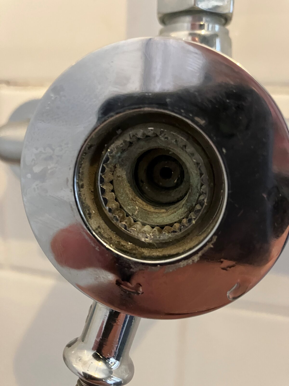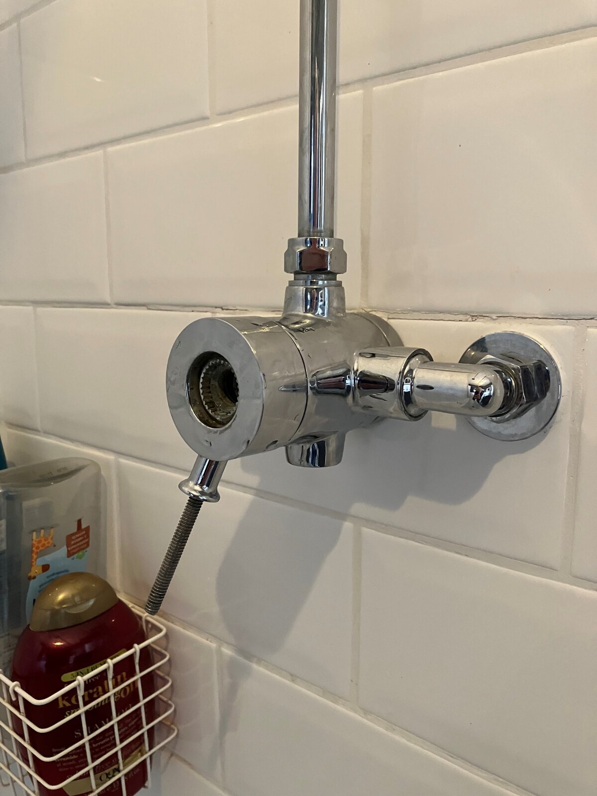 Victorian-style, exposed mixer shower is dripping. I've replaced seals in shower head but is still dripping and have concluded it must be the cartridge. However, I'm trying to access the cartridge to remove and replace it but cannot get the front chrome cover off.