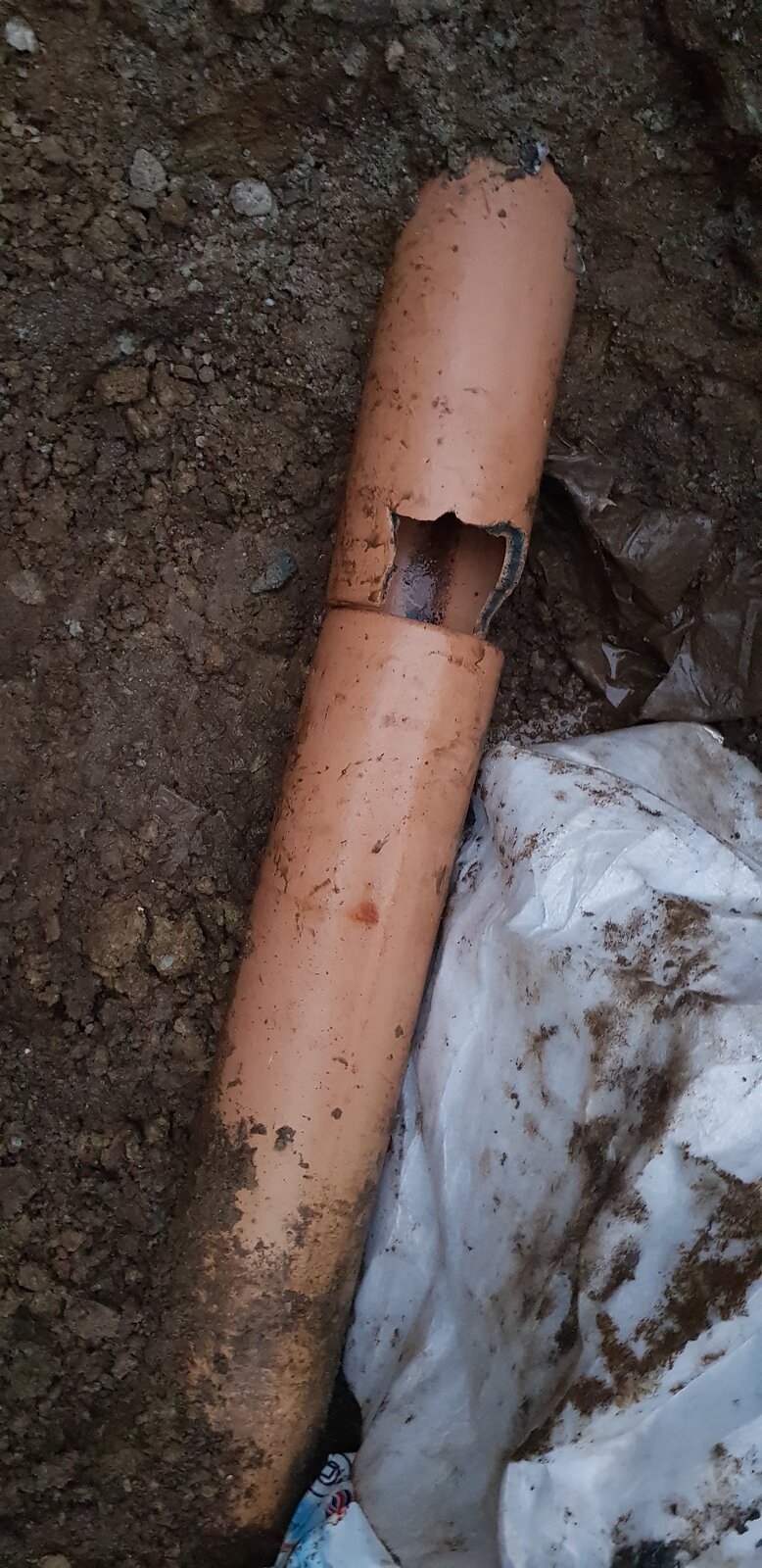 I revealed a good 2 meters of a soil pipe as part of an extension footings dig and accidently broke a bit out of the clay public soil pipe which comes across our garden. Its right on the connection of 2 pipes and from what I can see it was almost butted up against each other rather than inserted - but anyway.
