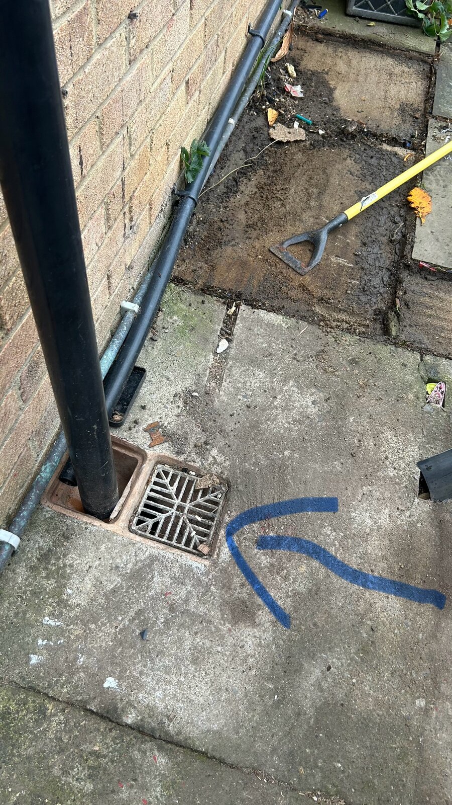 I can’t figure out how to connect the drain to my existing clay gulley (below) to finish it off.