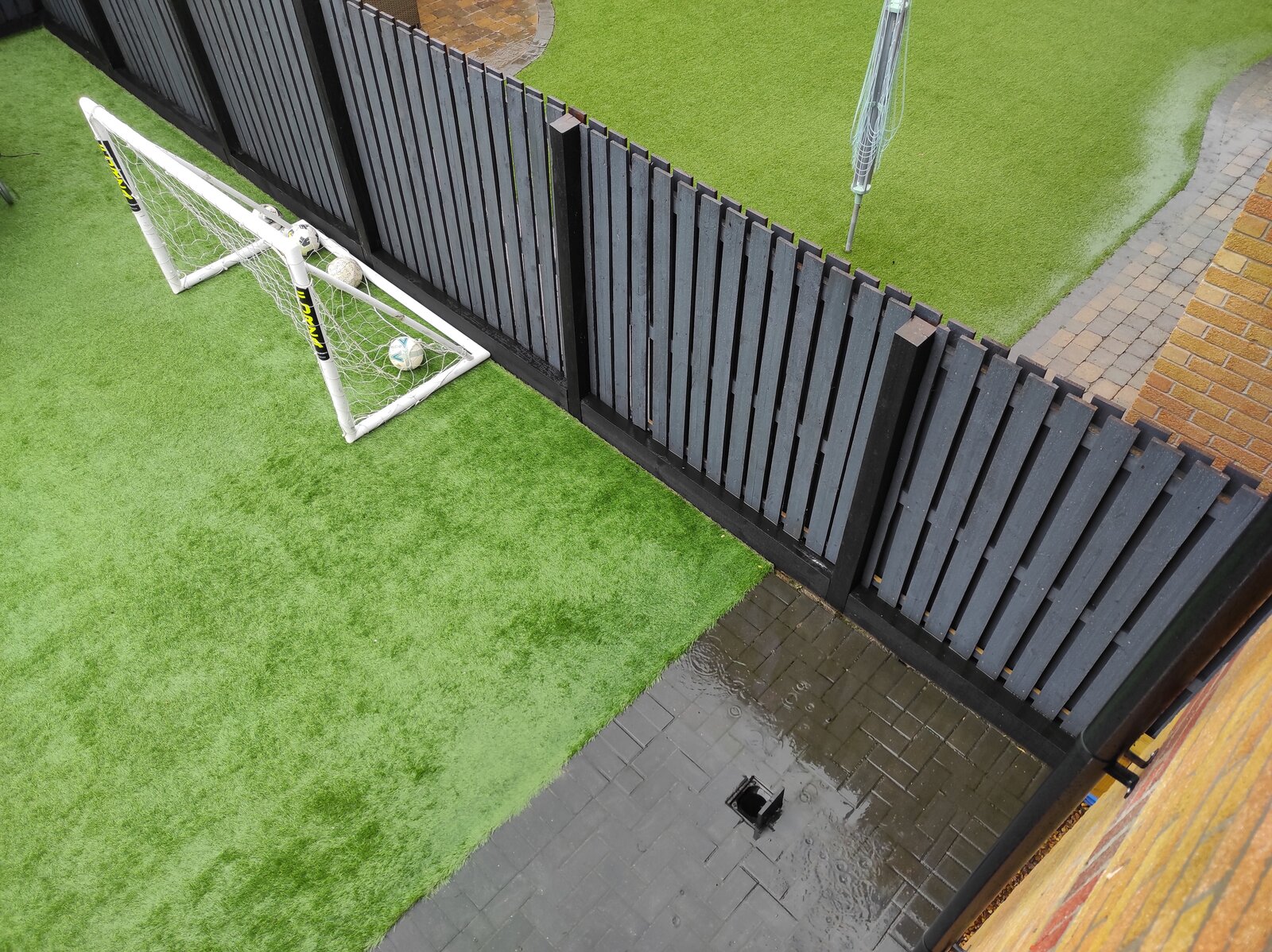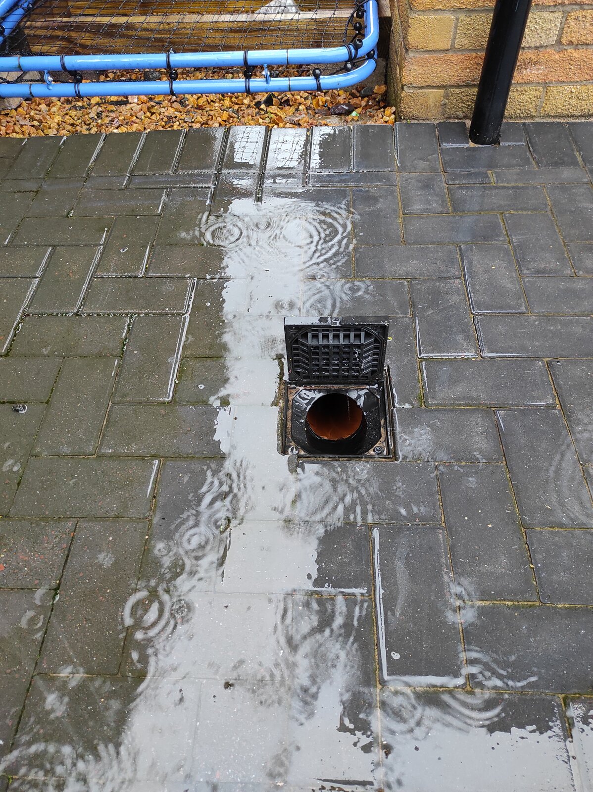 I've opened up the rodding eye for the surface water to drain when it's really wet so it helps clear the water and I'm 100% sure it is the downpipe eye because I can hear water going through when raining. I'm just worried about the water that gets into my neighbours from under my fence and runs down their path.