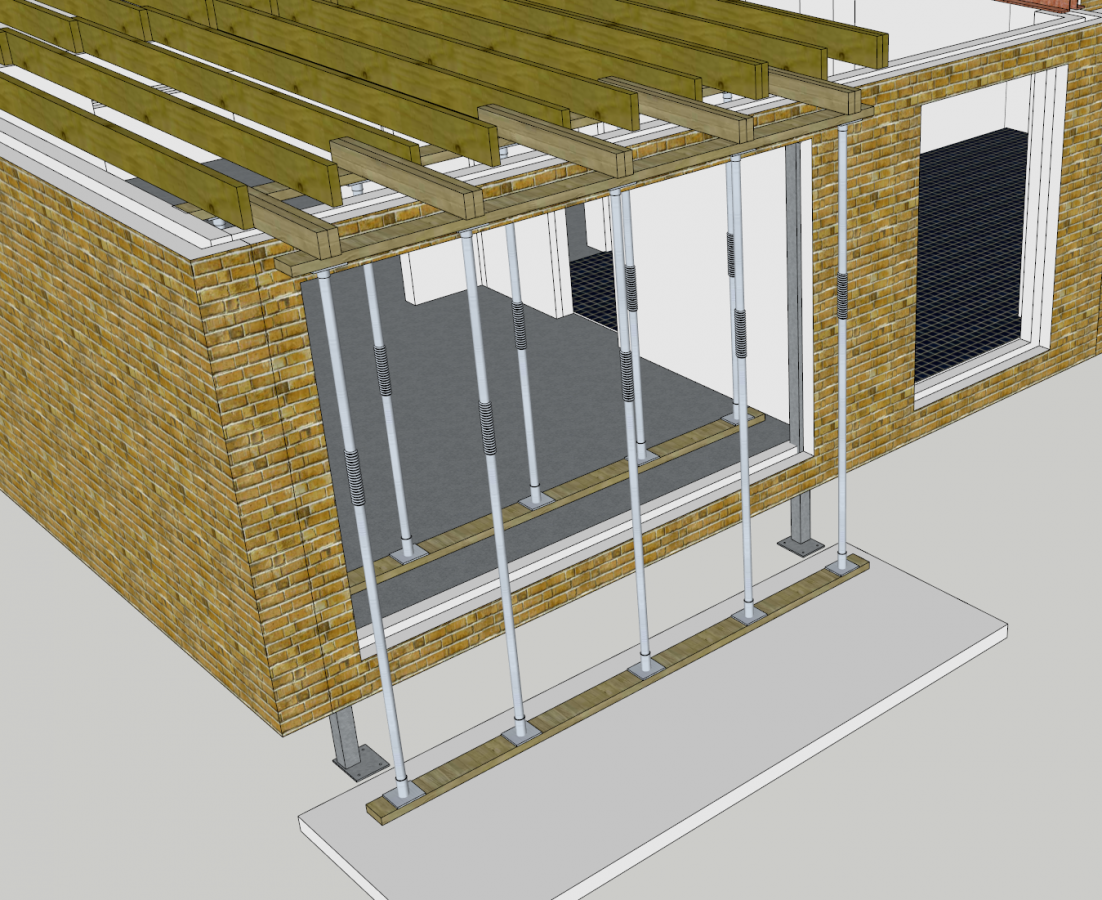 Edit: Beam will be placed by the wall internally prior to putting the acrows in - best I not forget or it could get rather difficult!