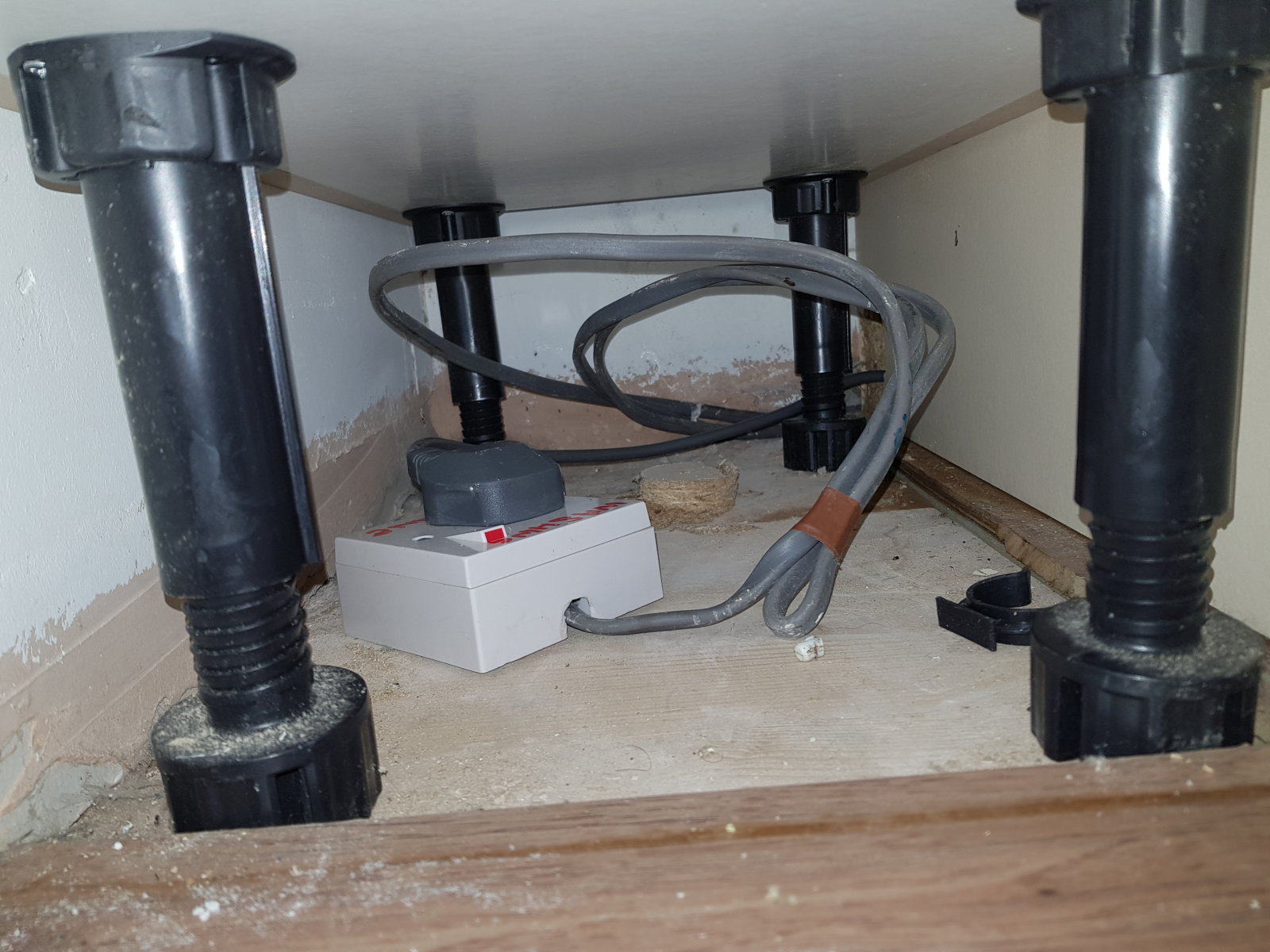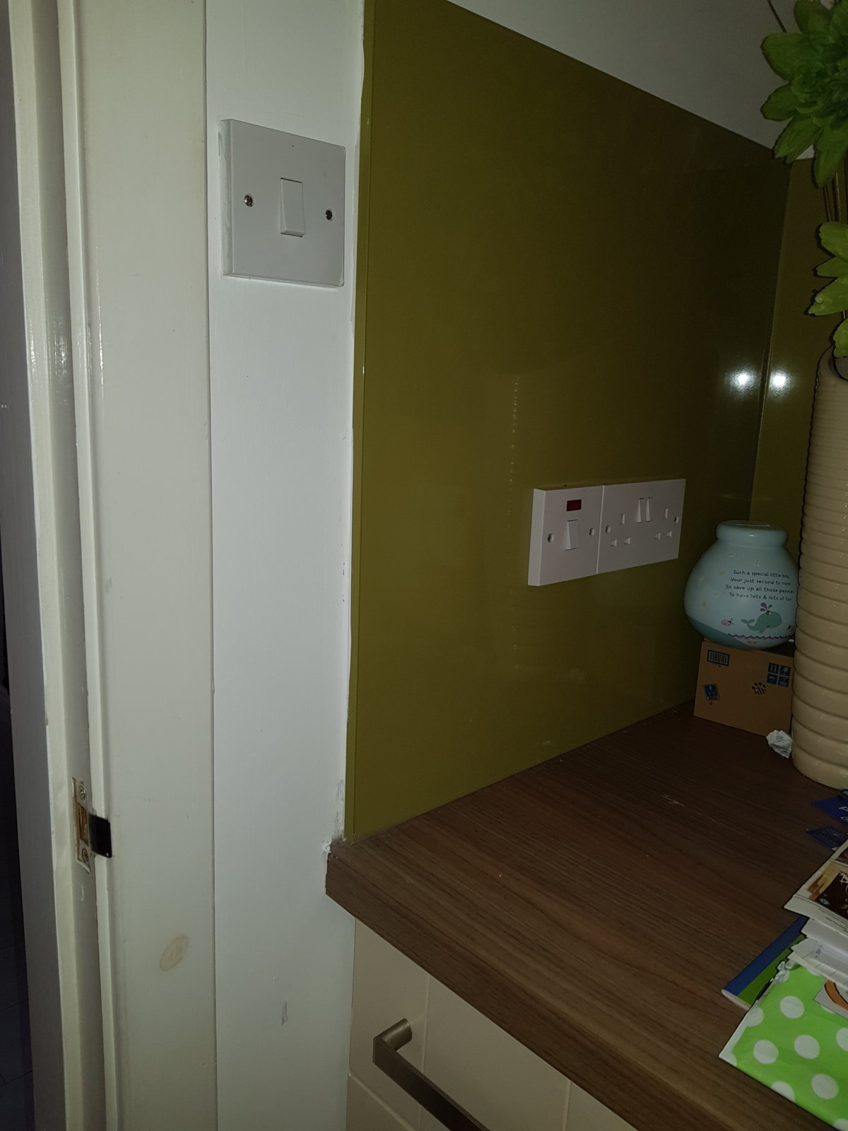 If he's concerned about noggins being in the way, surely having to drop a cable from the switch, and possibly from the ceiling to the switch, is more likely to make that concern a reality?More complex but I'd be tempted to wire it into the lighting circuit, changing the switch to a double, and fitting a 5A lighting socket vertically below the switch.