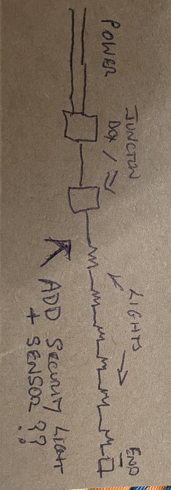 I have lights around my drive and thinking about putting a small security light in the circuit to not only flood the drive with more light but also to switch on other lights in the circuit . All the lights are LED so the load isn’t that high but what would be the best way to wire a standard security light to do this please ? Or is there a better way to do this ? I done a quick sketch to hopefully explain it better. Regards