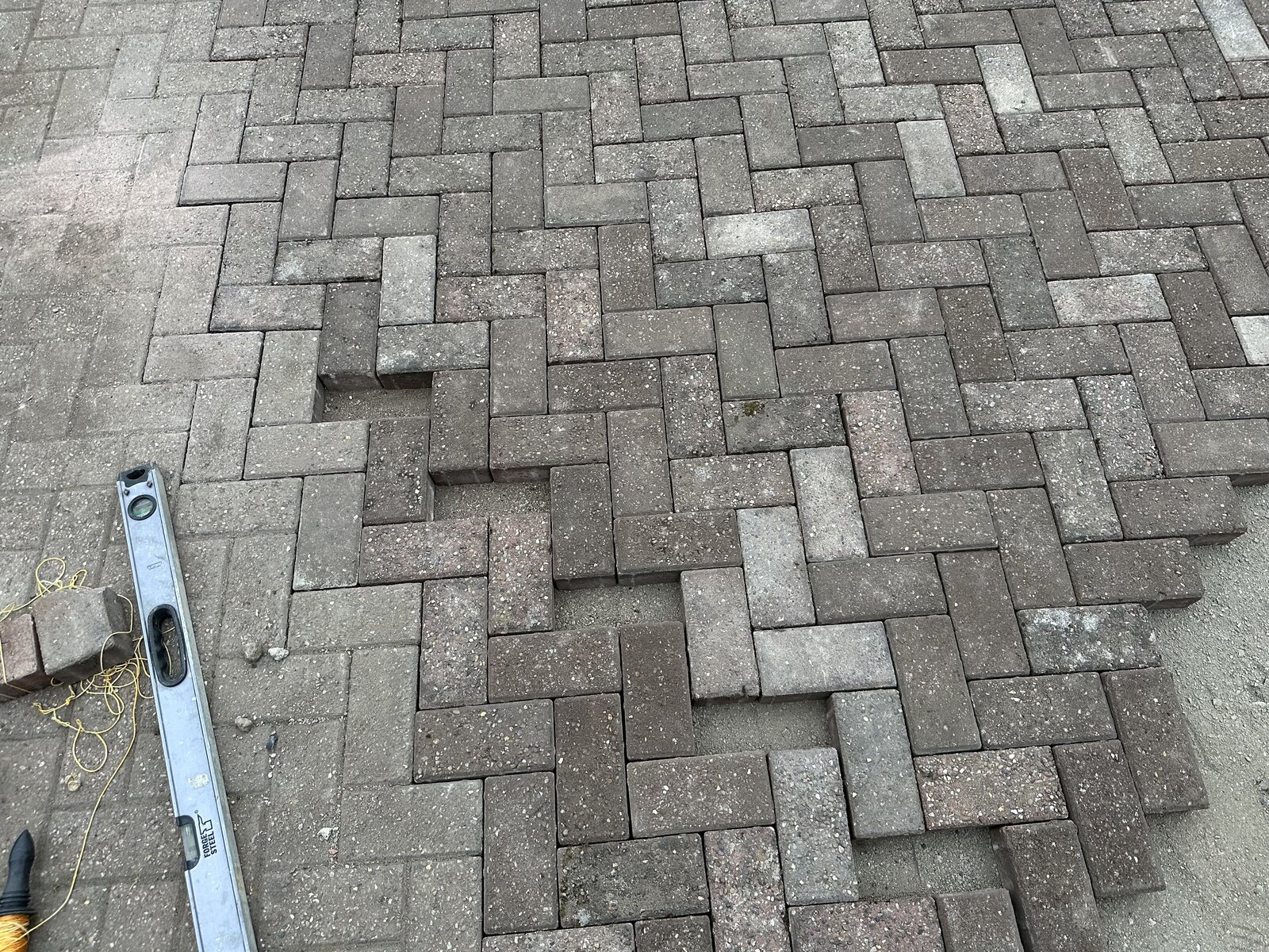 I’m extending my drive into the lawn and have been keying in to the old block paving in a herringbone pattern.