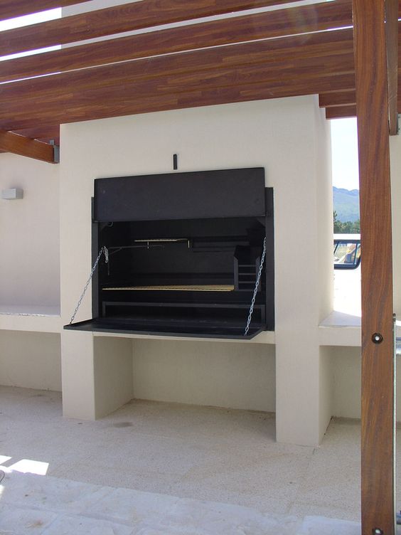 It will have an open fronted covered outdoor kitchen to one side which I want to install something like in the picture below but as I need to keep the structure under 2.5m for PD, I have limited headroom so will have to extend the brickwork (like a chimney)through the roof so its well insulated from any heat as its effectively a solid fuel open fire (subject to part J regs).