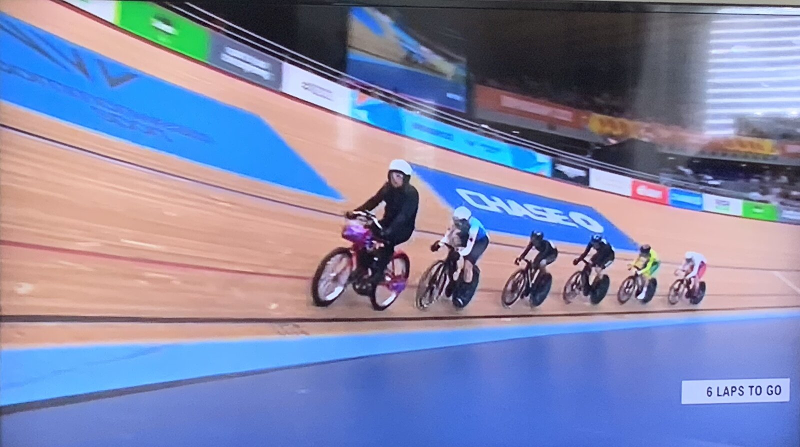 They're a competitor. Until 3 weeks ago they were known as 62 year old gardener Michael. Today they identify as 28 year old pro cycling racer Michelle and can therefore legitimately compete in the race. However, because 28 year old Michelle has the physical capability of an average 62 year old man, they can legitimately use a powered bike for assistance.