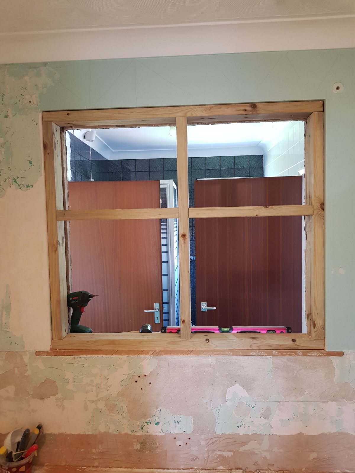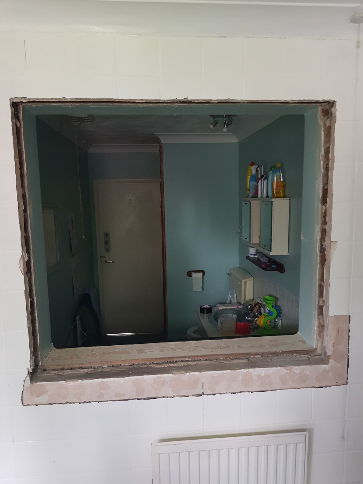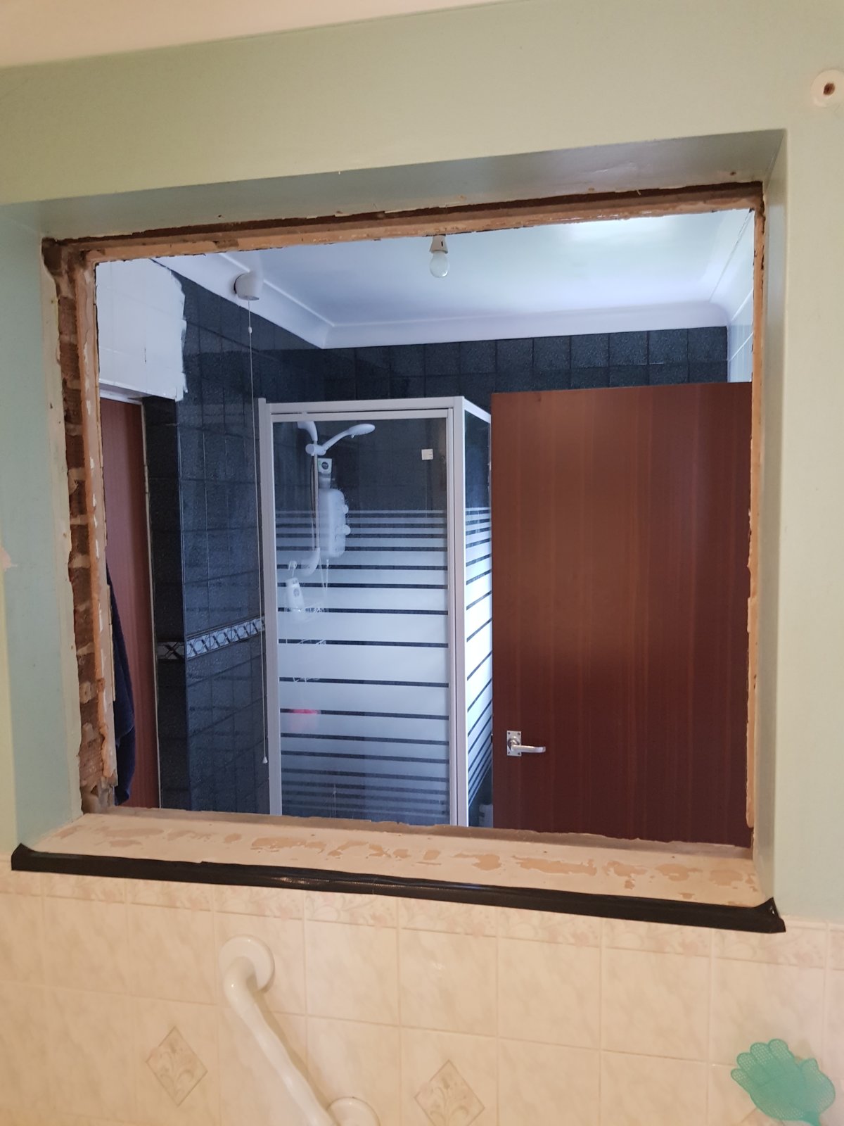 Currently I live in an extended bungalow and there was a window between the bathroom and en-suite which I've now removed. I want to install a shower so plan to close off and tile the window on the bathroom side and use the alcove on the en-suite side for shelving.