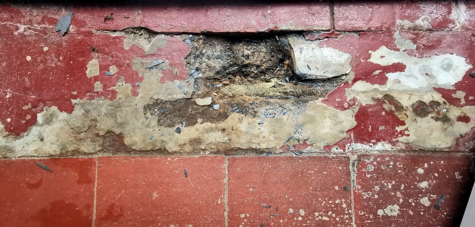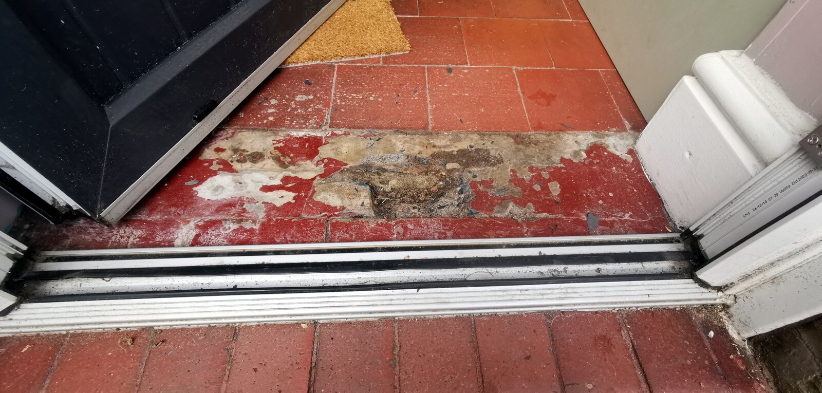 The builder who did some work on our kitchen was supposed to knock out all the hard concrete and replace with old floor tiles up to the door. After chipping away and leaving a hole he never returned to finish. Can anyone advise what is best to re-fill this hole as I don't think normal mortar will stand the test of time as the hole is too shallow.. A doormat will be going over it. The concrete already in place is rock hard. Perhaps resin ? For now I have a thin tin plate over it so the matt doesn't get a hole.