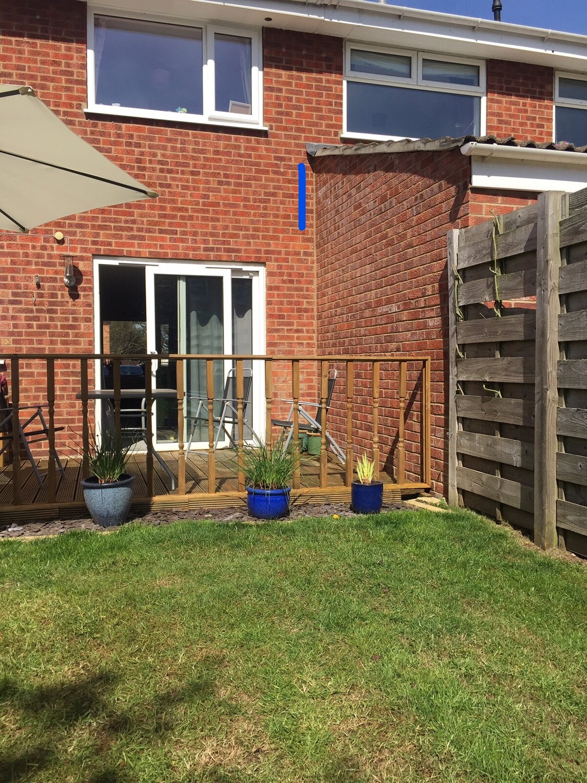 I am starting to think about adding an extension to the rear of my property. As you can see in the attached photo, my neighbours house already had an extension, which was build about 8 years ago by the previous owners (also before we moved in). I have marked a blue line on the photo where I believe the boundary is. As you can see the external wall of the neighbours extension is about 6 inch within their boundary.
