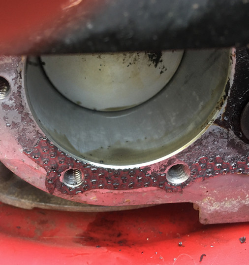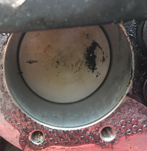 The presence of oil on top of the piston may still be residue from when it was tipped over and hasn't been started to burn it off.