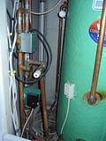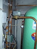 The next picture shows the pipe work splitting, through the wall into the front room.