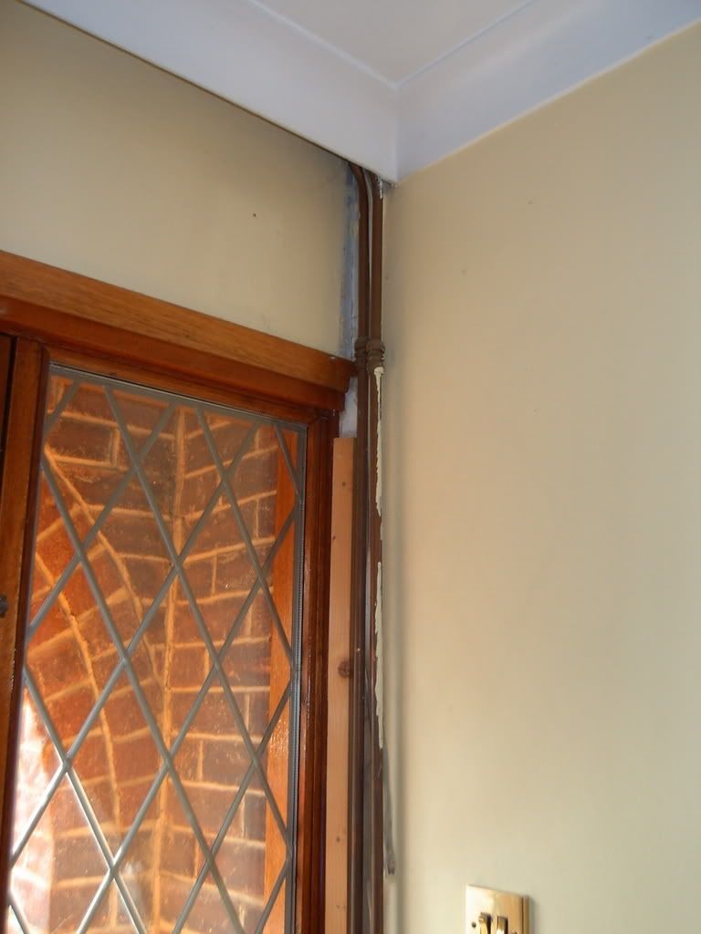 This picture shows the pipework coming down from the bedrooms to the hallway rad via the front door surround.