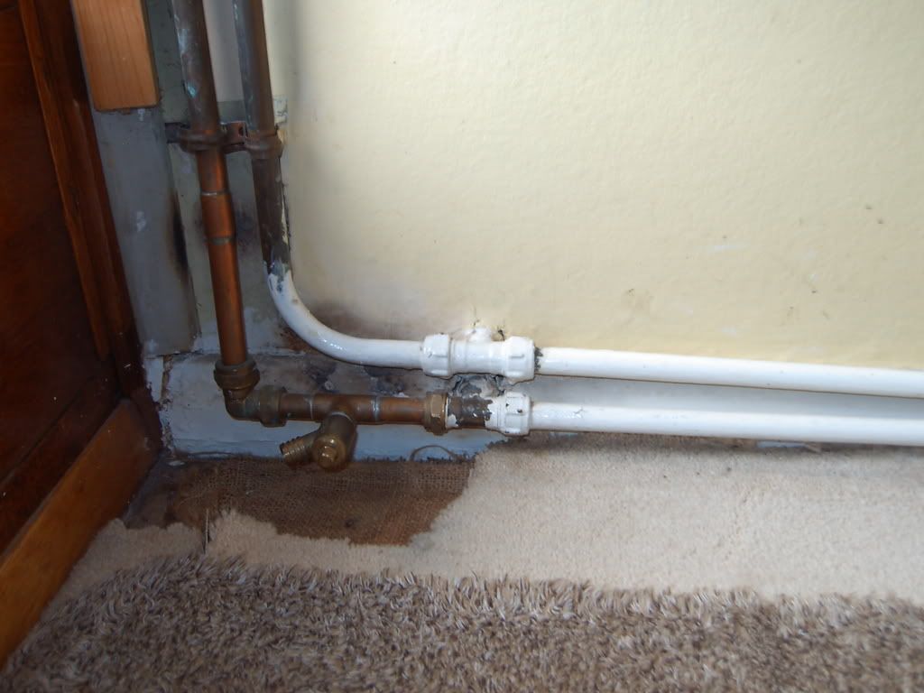 The next picture shows the pipe work splitting, through the wall into the front room.