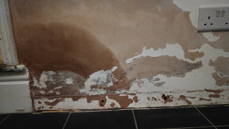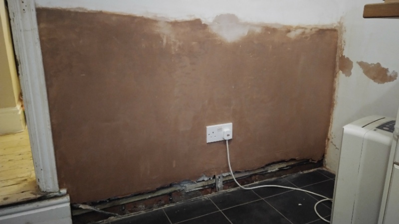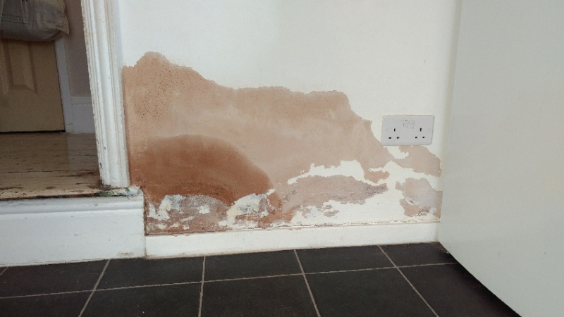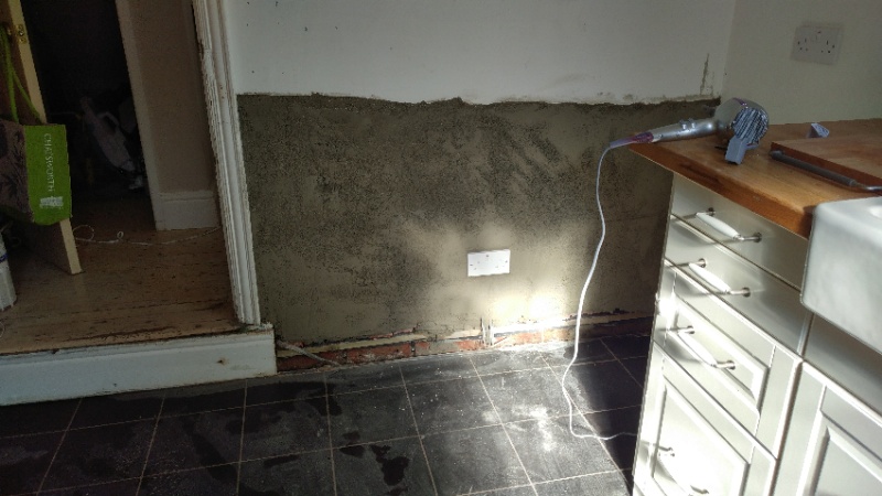 We had 1m high of plaster hacked off at skirting level and reinstated last week, to remedy a rising damp patch on an internal wall, due to wet, rotten pan wood sitting on top of the original bitumen damp course (1.5m).