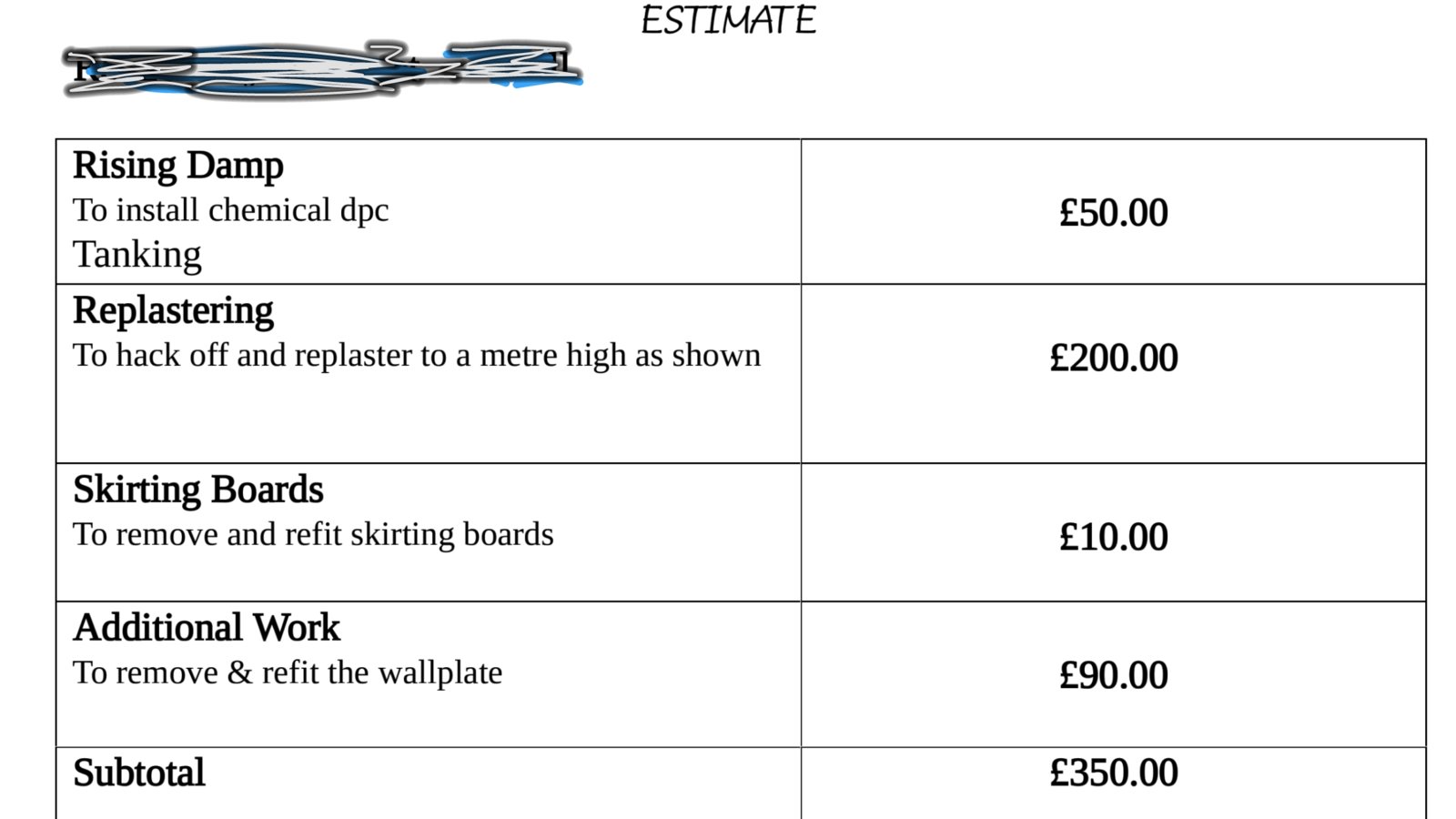 Also £10 + vat to remove a skirting board.