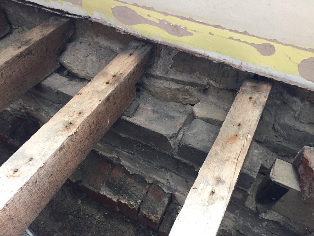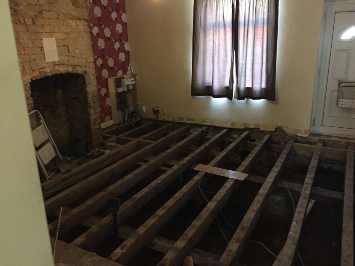 This is a ground floor suspended timber floor and the house is a 1830's stone mid terrace. Looking at the neighbours house, originally the floor would have been stone flags laid straight onto the ground.