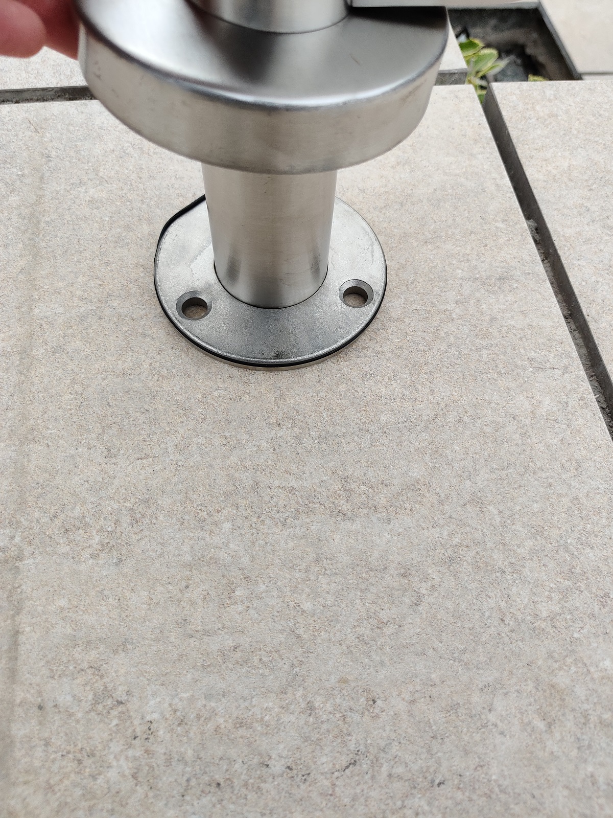 So, I'm stuck between coring out a large hole in the tile and potentially weakening it or fixing to the top of the tile and potentially cracking the tile if someone leans on it. I would love some advice on this if anyone has any experience or thoughts on it.