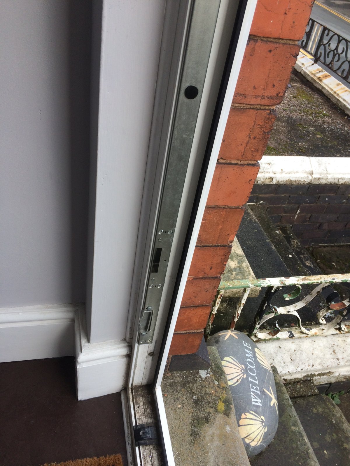 Any help or advice would be greatly appreciated. Im not getting the builder back to rectify any of this, as when it was fitted the frame was sealed at the bottom, on the outside....... resulting in the rain pouring into our porch... I rectified that, after getting no response from a number of phone calls to him.. lesson well and truly learnt.