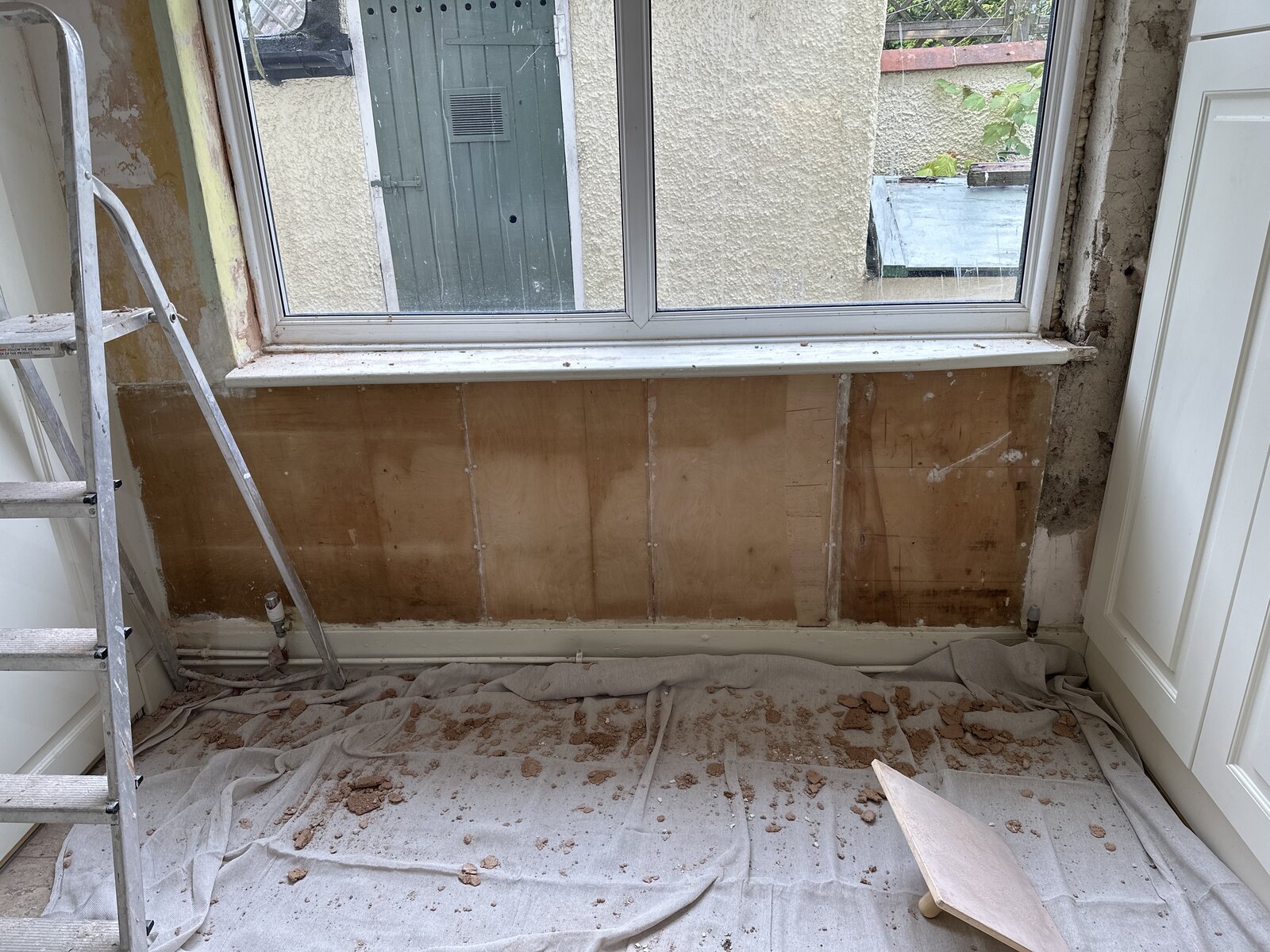 I am refurbishing a kitchen wall which needed a fresh lick of paint, however when removing the radiator and stripping wallpaper, I noted the bottom section of the wall has been panelled with plywood (6mm or so) as you an see from the attached.