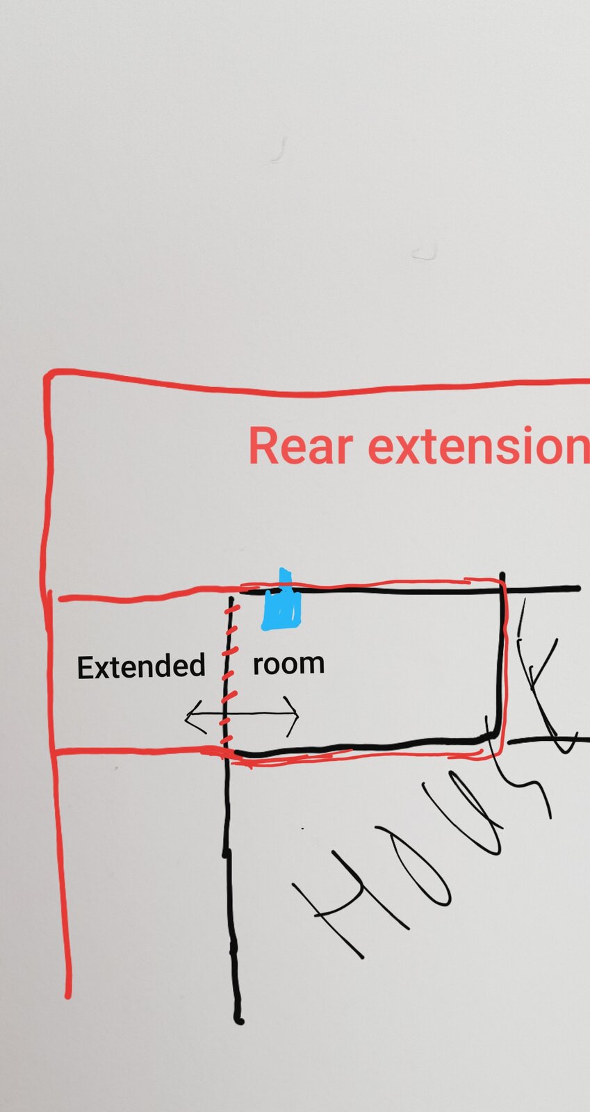 See attached picture for position of boiler if put in utility room. Black lines is current house, red is extension, blue will be boiler location and flue. This room will eventually be extended to the side and will be a will dual purpose utility room and kids craft/playroom.
