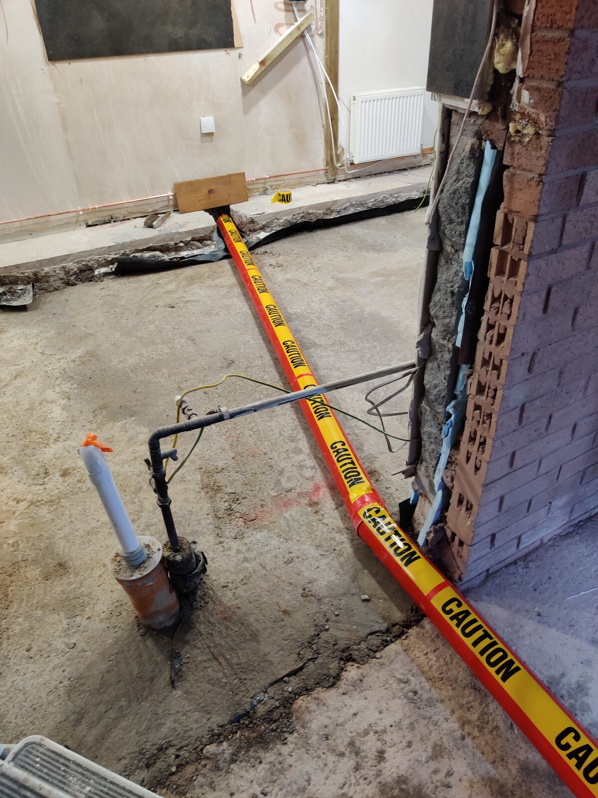 The cable enters the house and travels under the (soon to be poured) screed in ducting (see photo below) to the cupboard with the consumer unit in.
