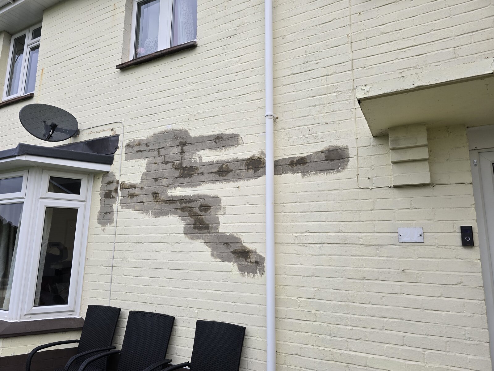 We also had what looked like damp/water damage coming from the ground between the bay window and the main entrance to the house. This would be the lounge and part of the downstairs hallway.