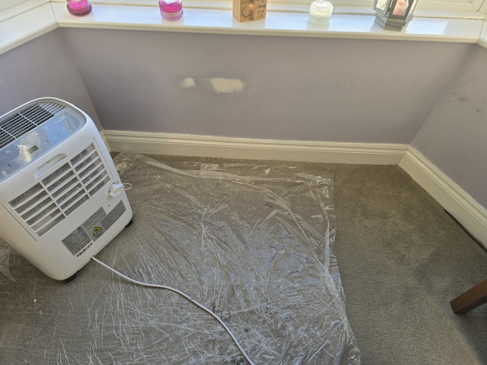 On the ground floor of our 1980s ex-council terraced house, we had quite a bit of damp/water damage to the wall from the bay window ceiling to the window sill.