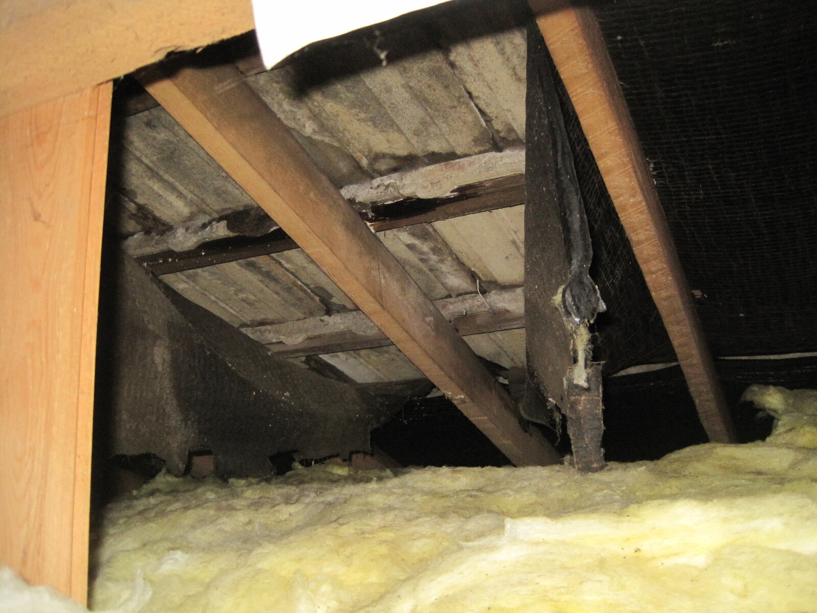 I cannot see any roof damage on the outside but in the loft above the area where the light fitting is the felt has dropped away, every where else it looks normal.