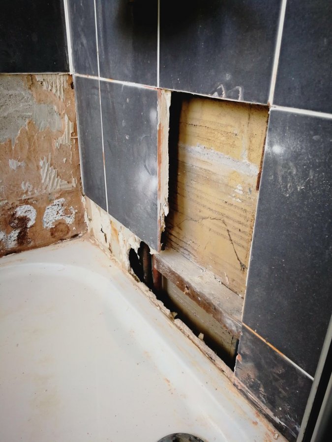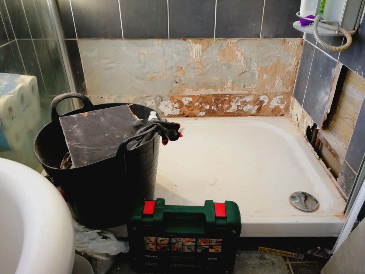A few weeks ago, i noticed that the wall in my daughters room had a damp patch in the bottom corner. Behind that wall is the shower tray.