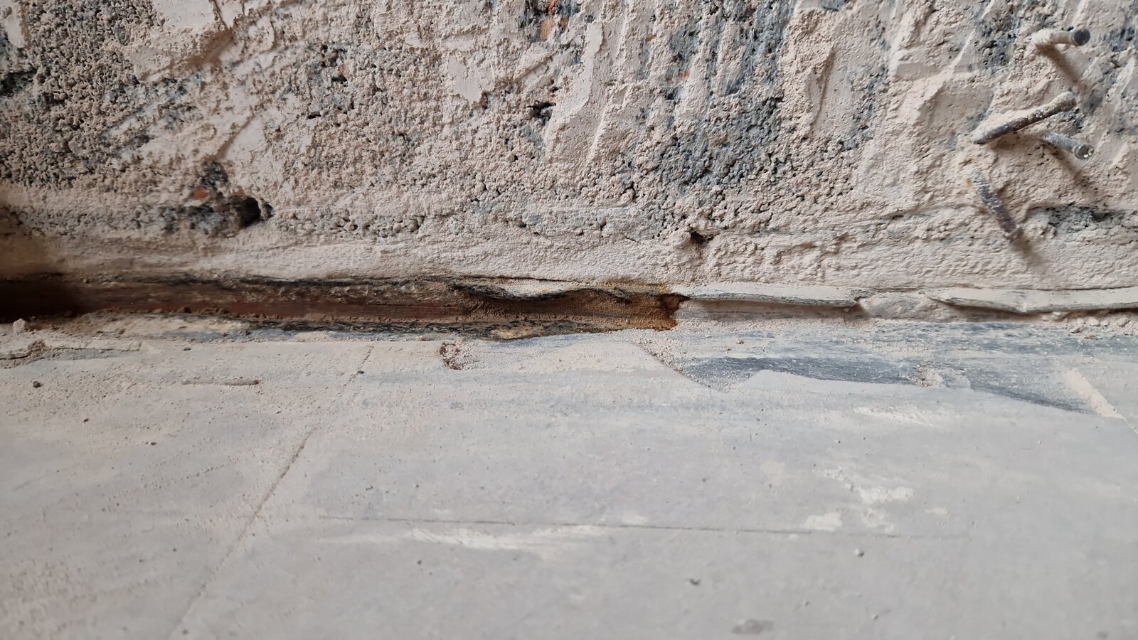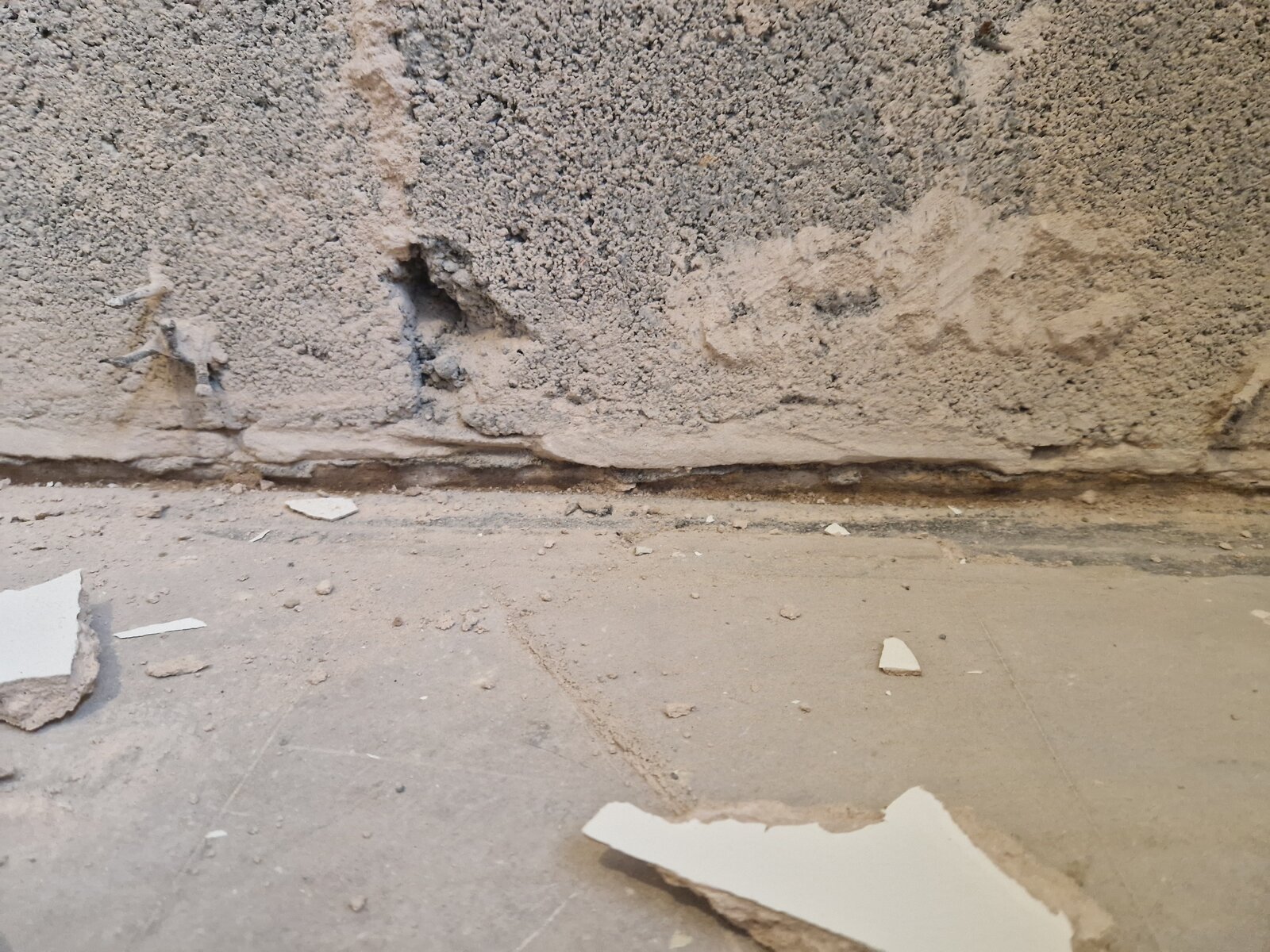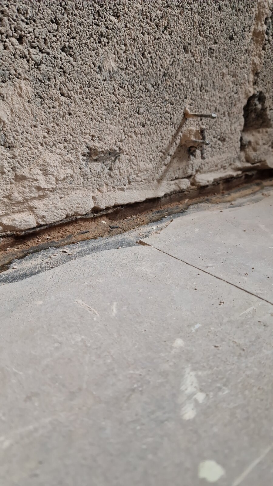 The walls are damp under the dpm that are in the walls on the outer wall and on the 2 inside walls which is weired .